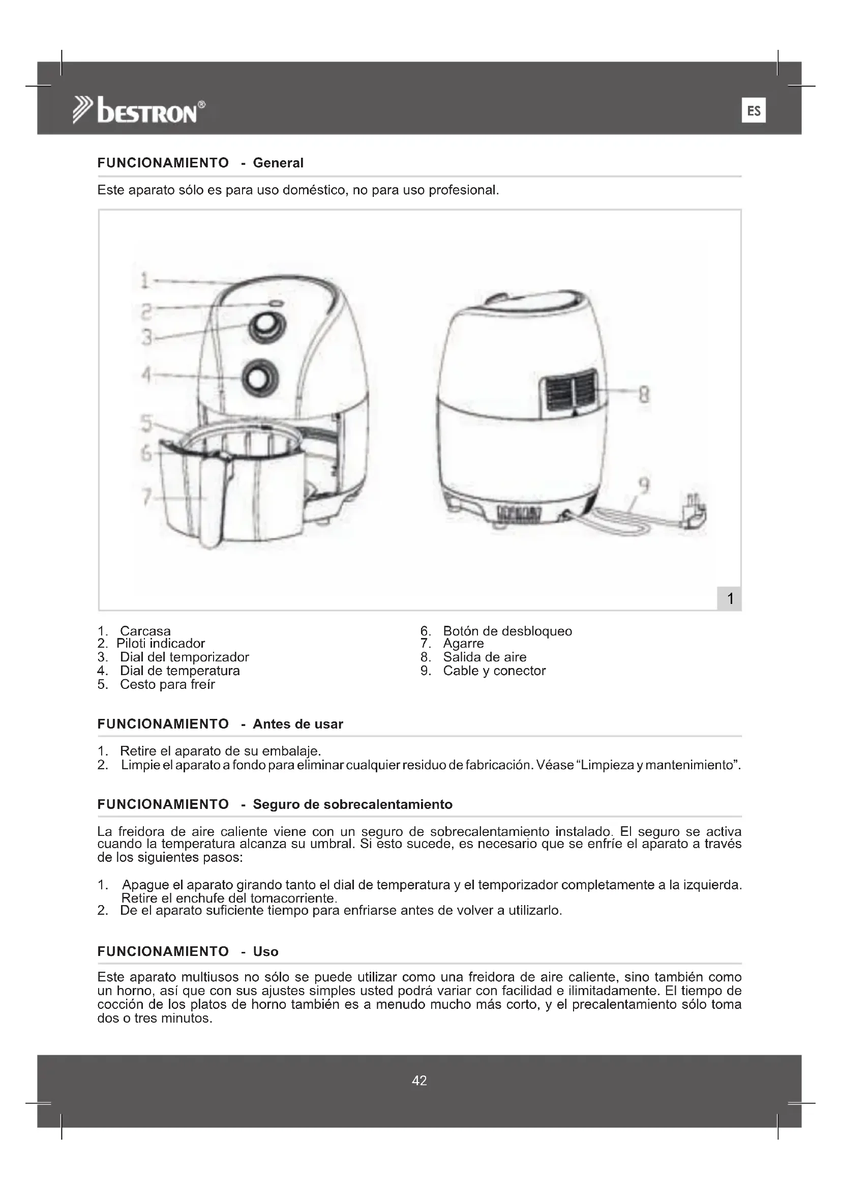PrepAir AAF300 - Freidora BESTRON - Manual de uso y guía de instrucciones gratis