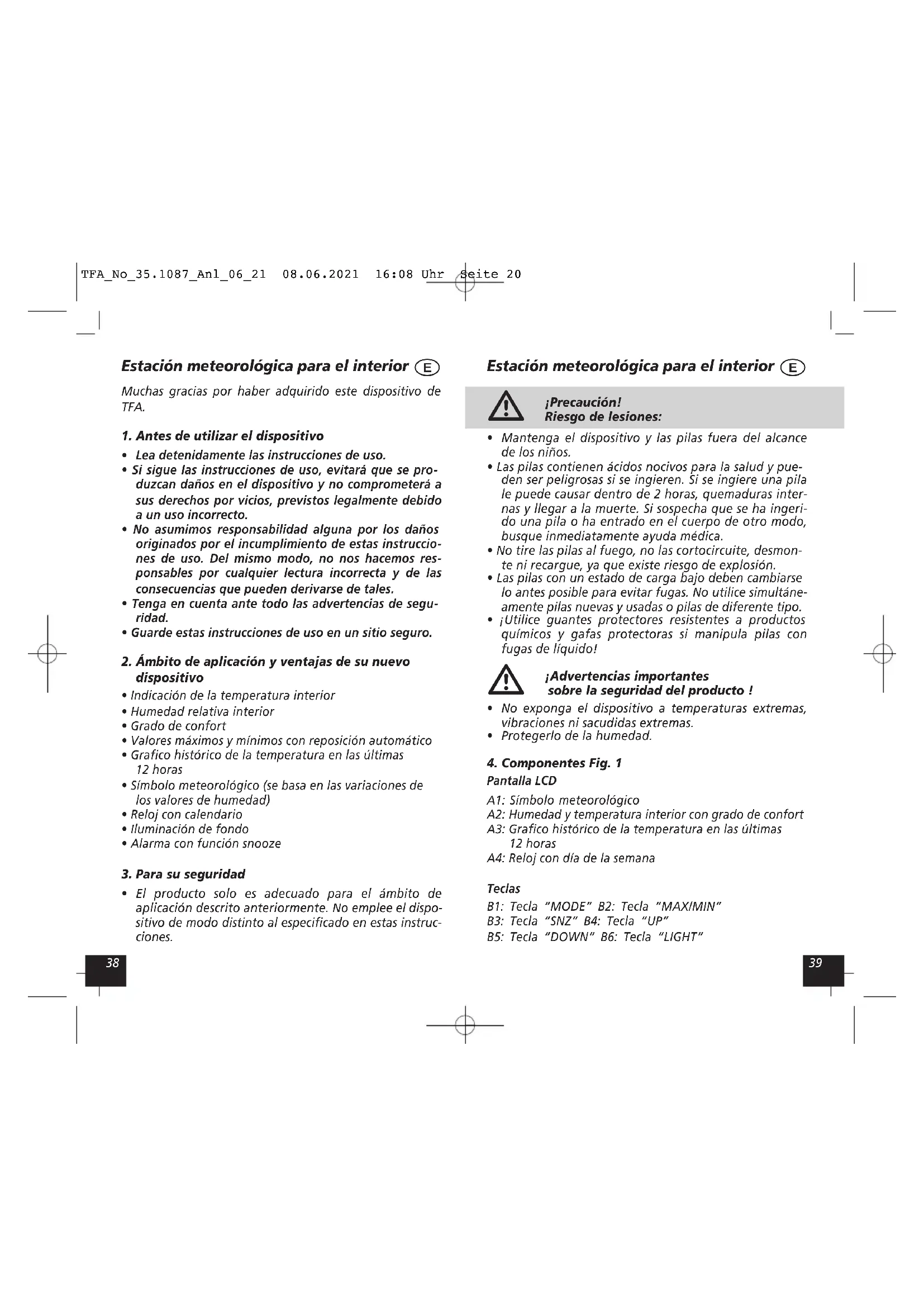 Encuentra gratis el manual del aparato 35.1087 TFA en formato PDF.