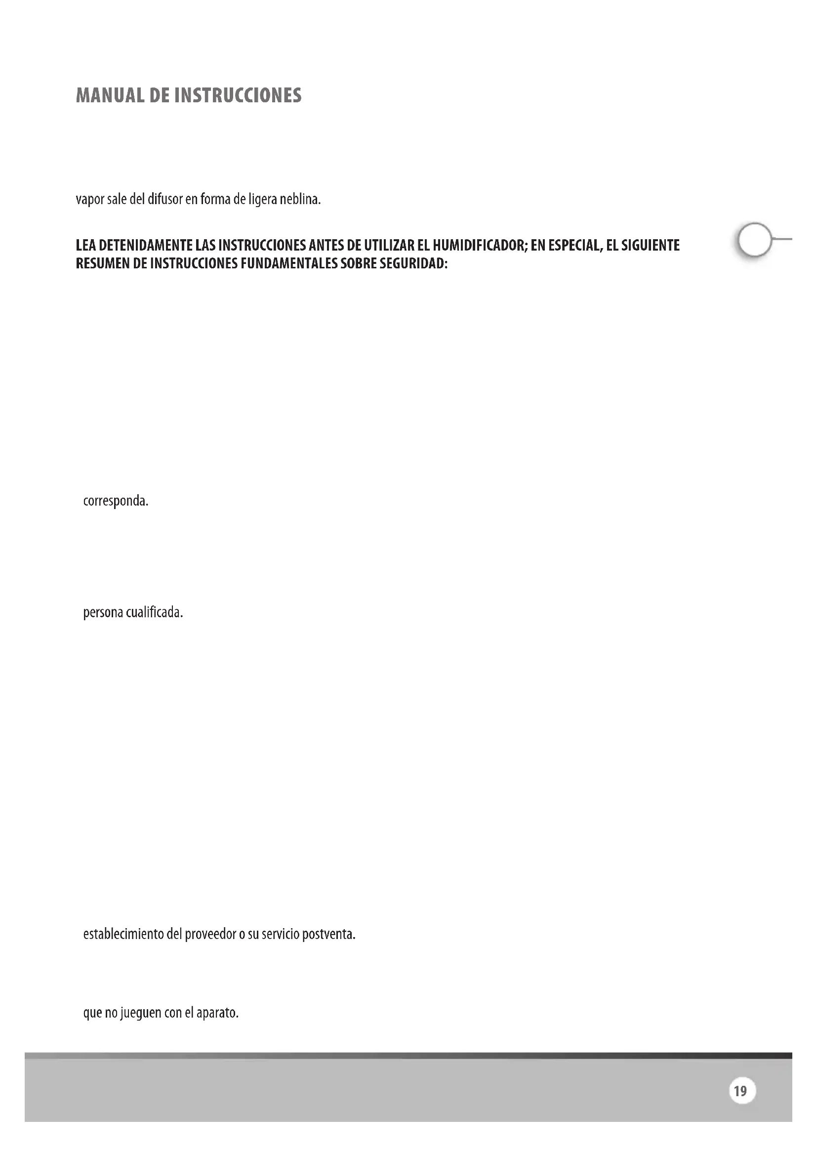 - Coloque el humidificador fuera del alcance de los niños. No deje que los niños jueguen con el aparato.