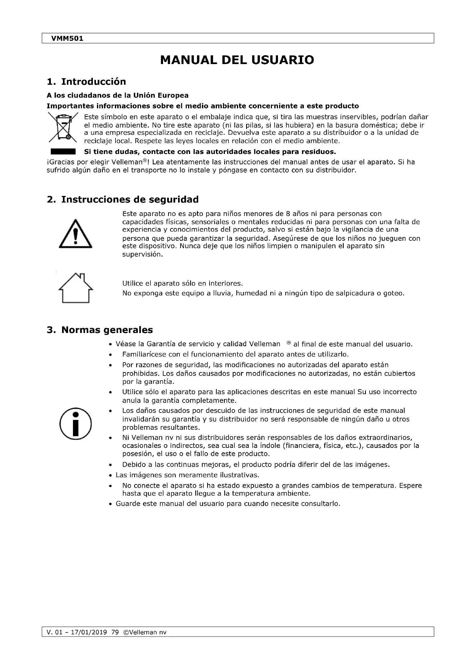 MANUAL DE USUARIO VMM501 VELLEMAN