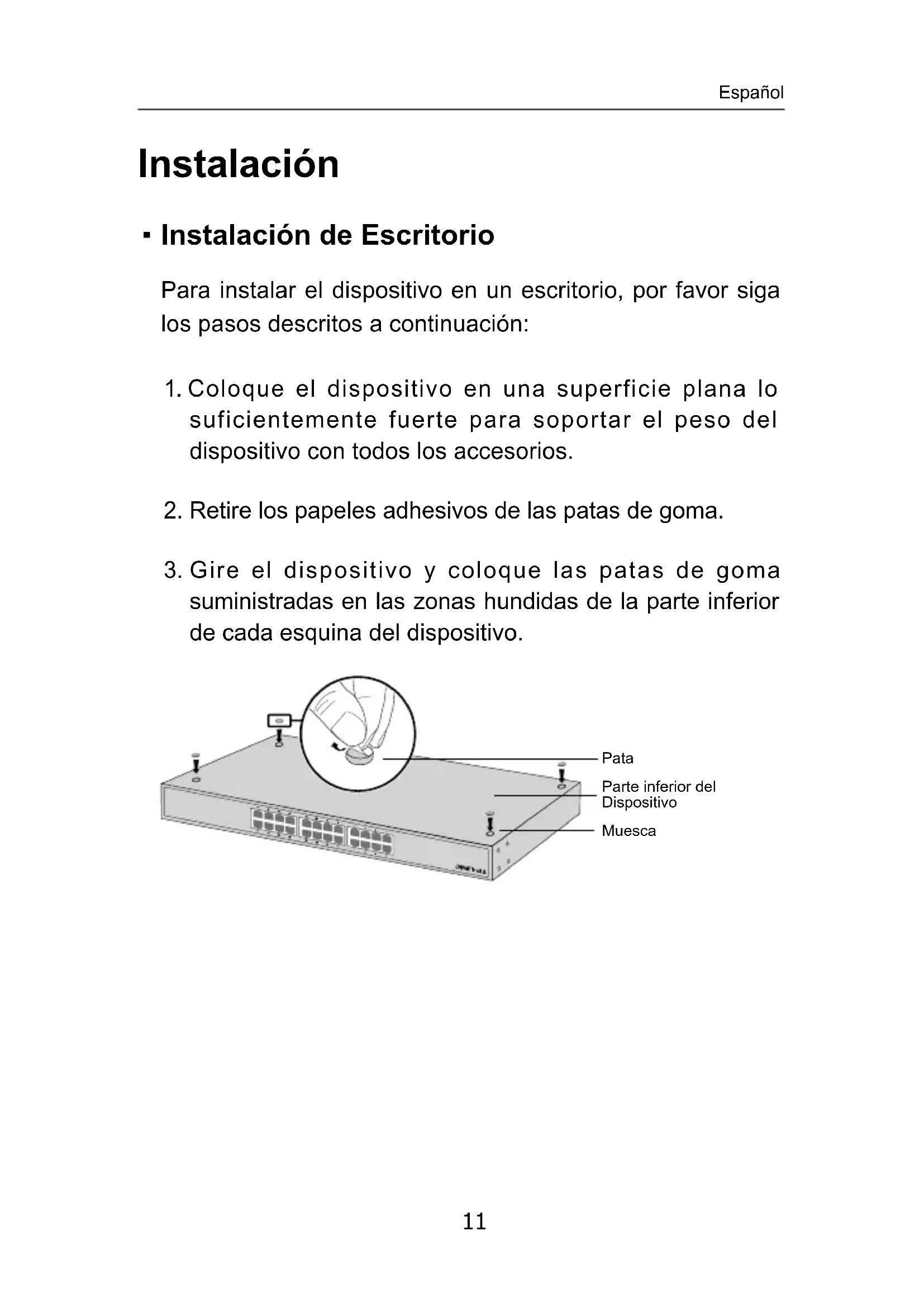 Instalación de Escritorio Para instalar el dispositivo en un escritorio, por favor siga los pasos descritos a continuación: