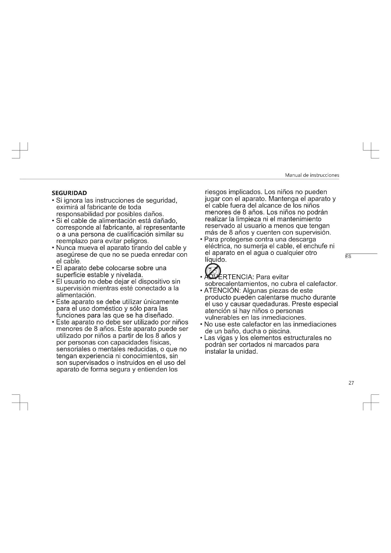 - ADVERTENCIA: No utilice este calefactor en estancias pequeñas cuando estén ocupadas por personas que no sean capaces de salir por si mismas de la estancia, a menos que se ofrezca supervisión constante.