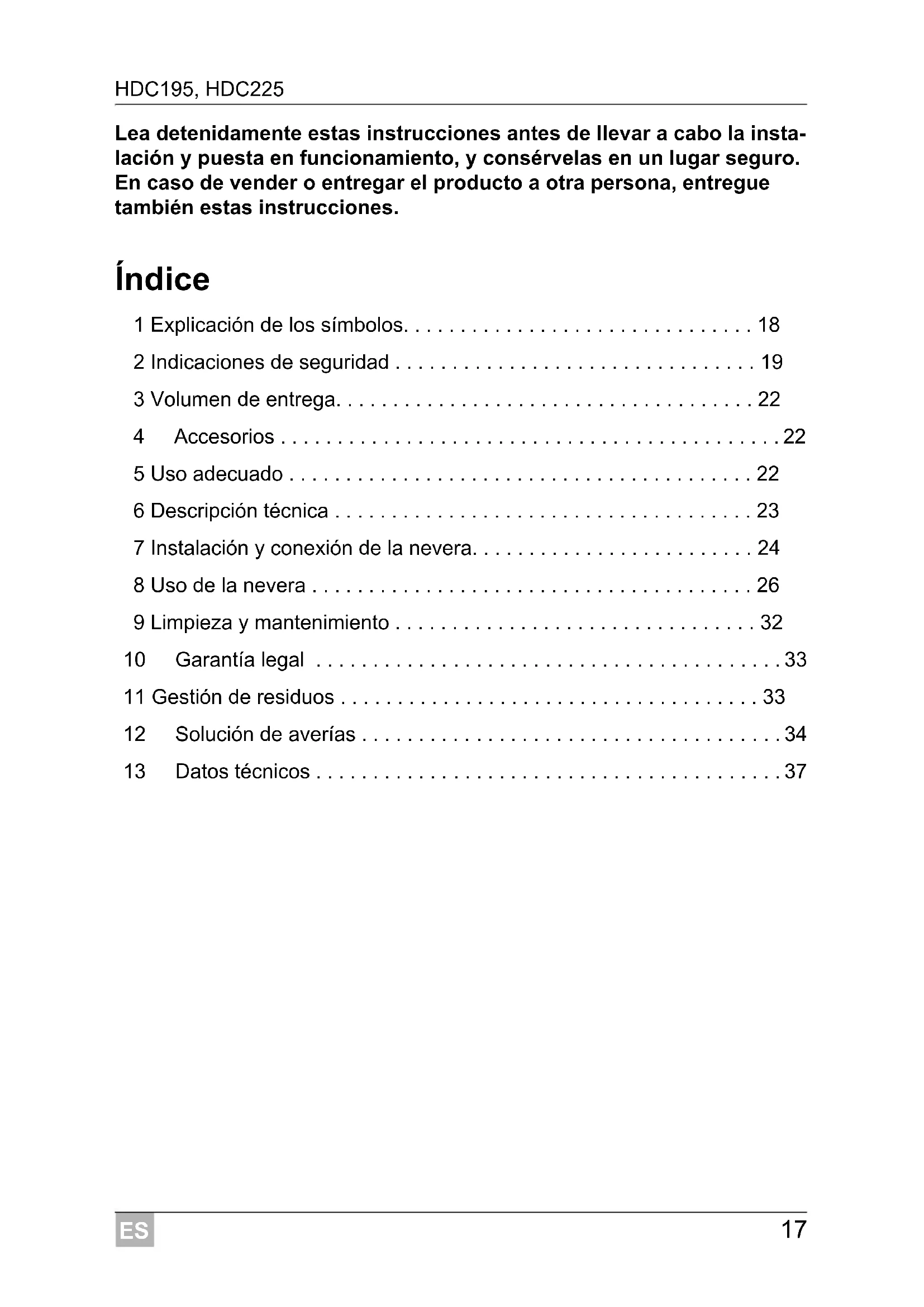 - 13 Datos técnicos ES Explicación de los símbolos HDC195, HDC225 p. 37