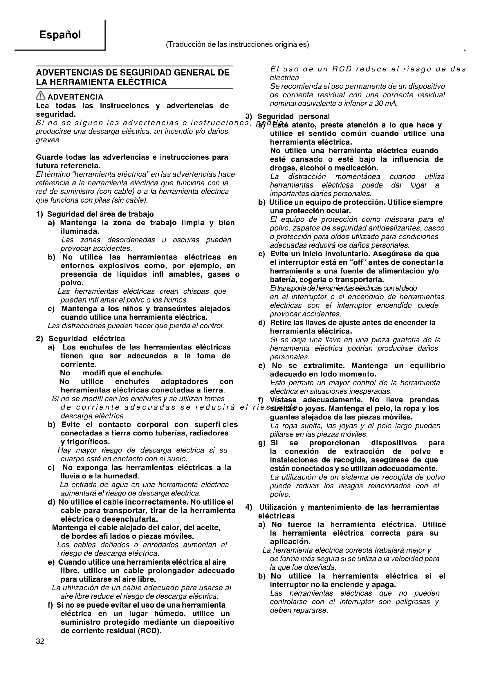 En el manejo y el mantenimiento de las herramrientas electricas, sedeferan observar las normas y reglamentos vigilentes en cada pais.