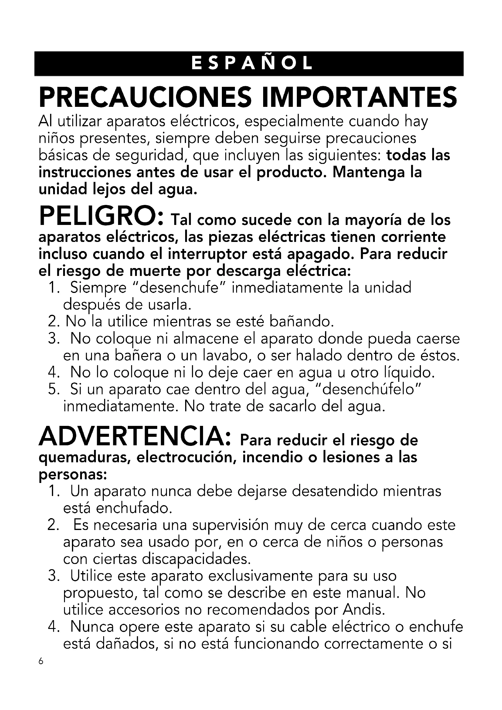 - Utilice este aparato exclusivamente para su uso propuesto, tal como se describe en este manual. Noutilice accesorios no recomendados por Andis.