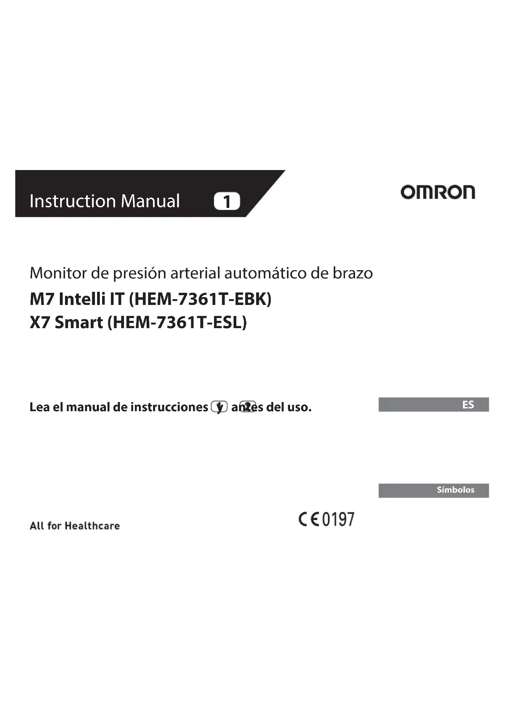Símbolos Monitor de presión arterial automático de brazo M7 Intelli IT (HEM-7361T-EBK) X7 Smart (HEM-7361T-ESL) Lea el manual de instrucciones y antes del uso.ES1