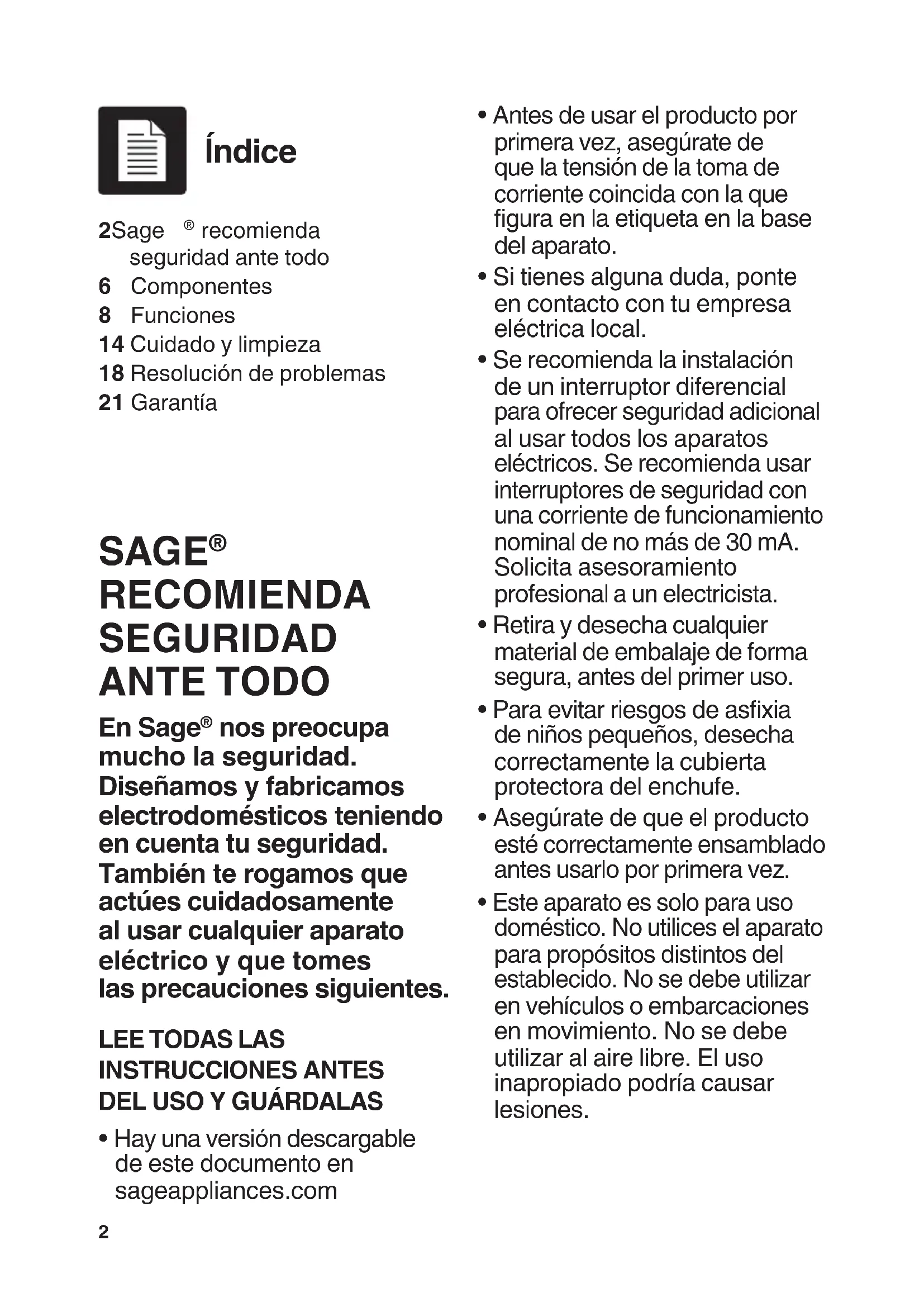 Hay una version descargable de este documento en sageappliances.com