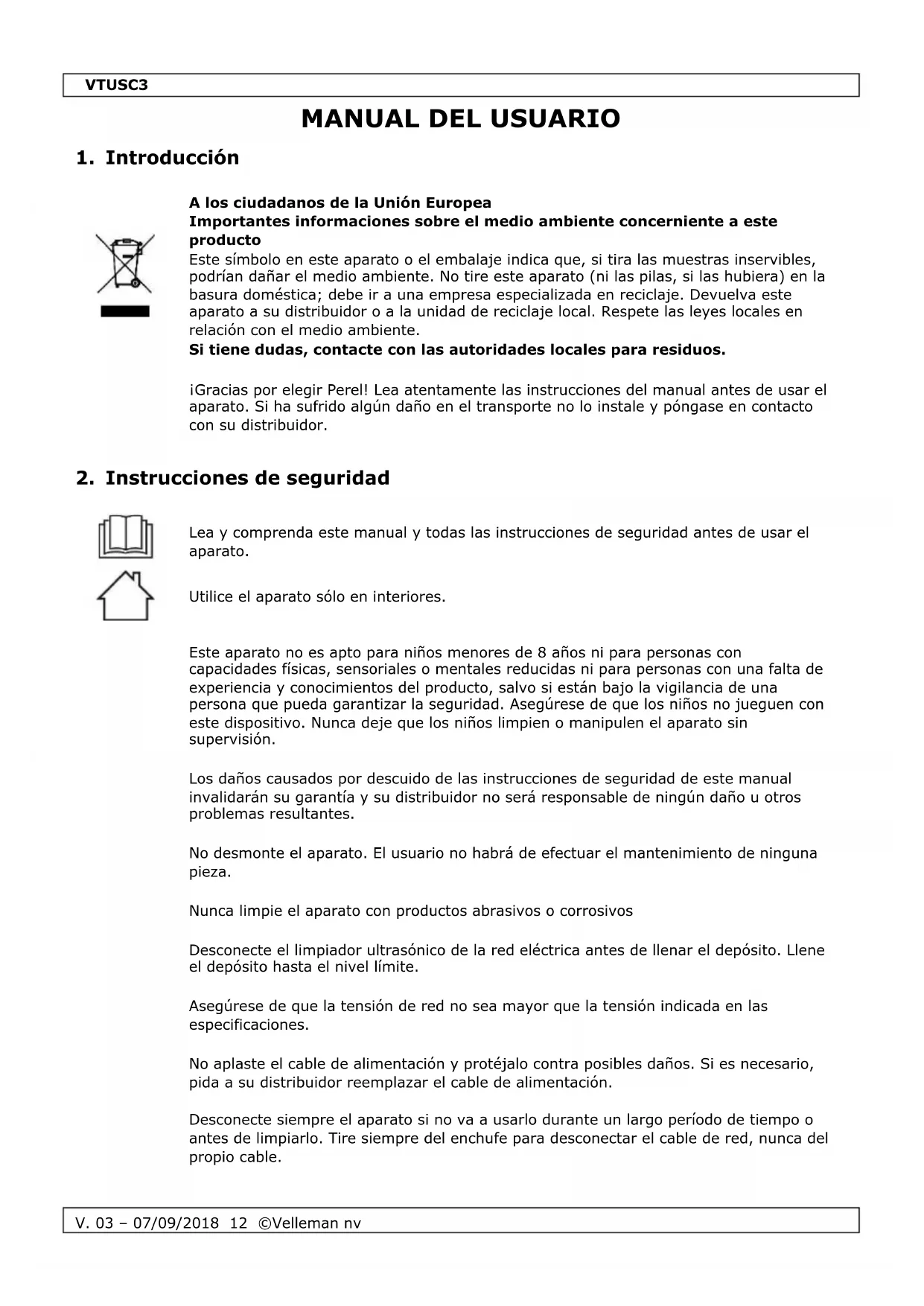 VTUSC3 - Limpiador ultrasónico Perel - Manual de uso y guía de instrucciones gratis