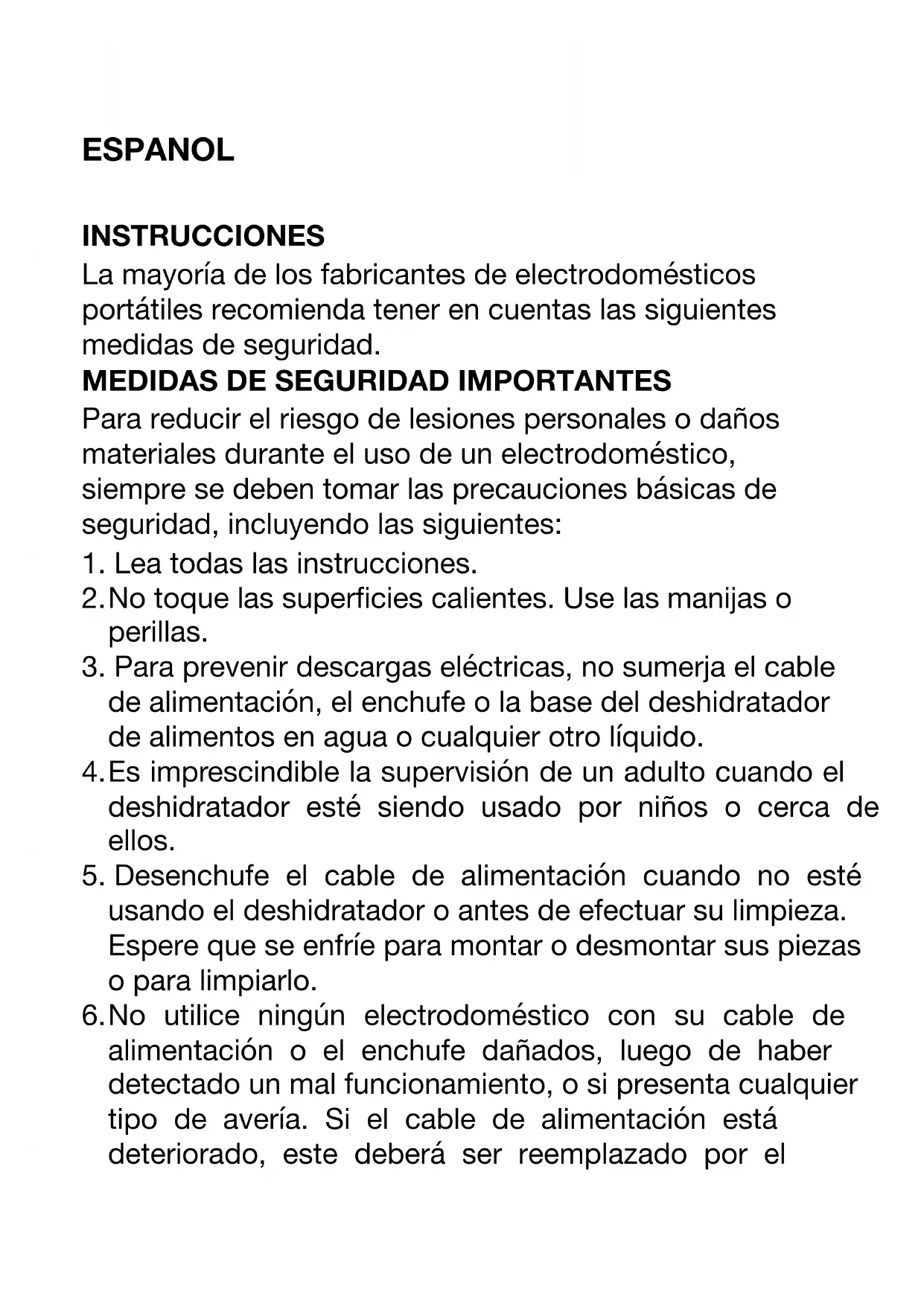 6. No utilice ningún electrodoméstico con su cable de