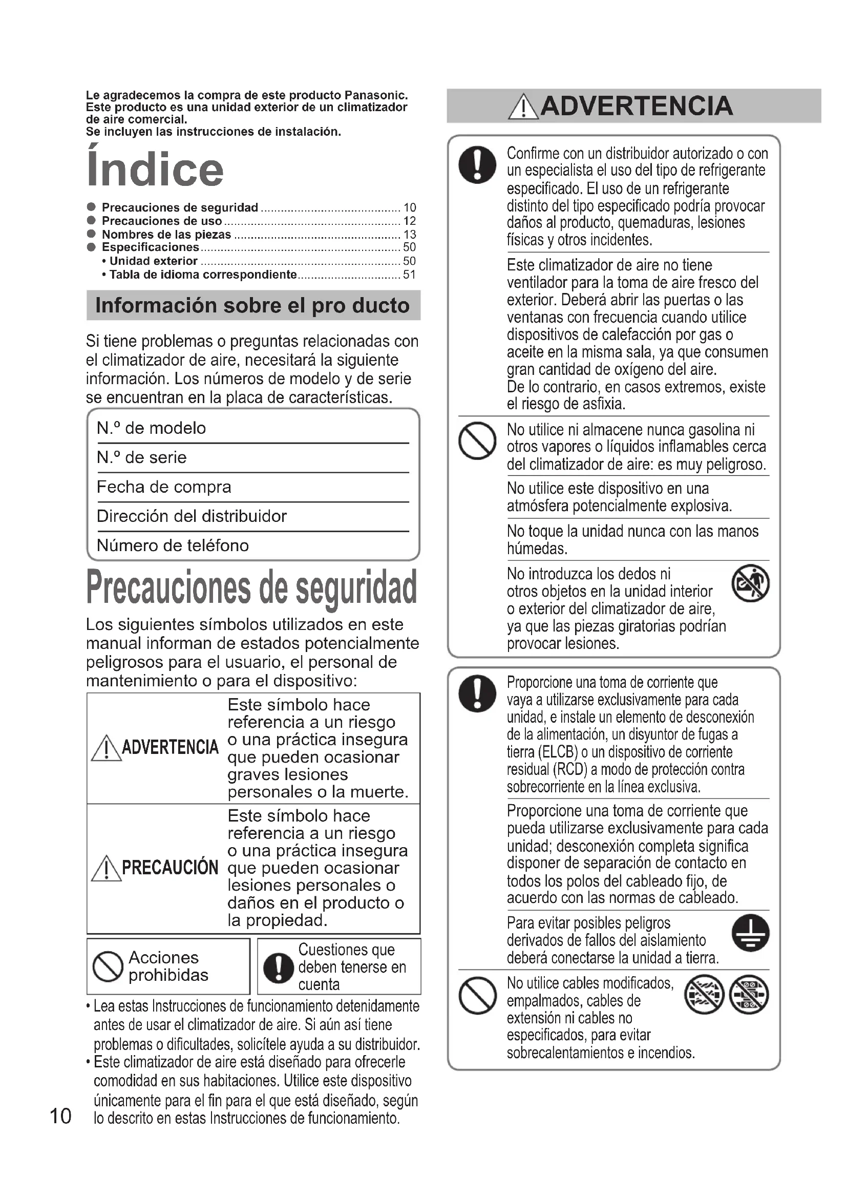 Le agradecemos la compra de este producto Panasonic. Este producto es unaunidad exterior de un climatizador de aire comercial. Se incluyen las instrucciones de instalacion.