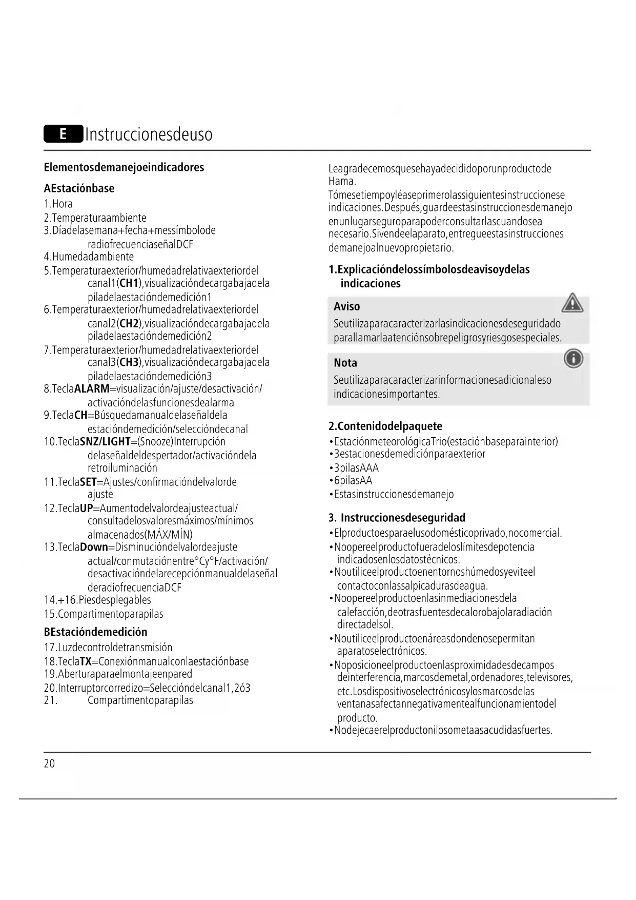 - Utilice el artículo exclusivamente con condiciones climáticas moderadas. Aviso – Pilas