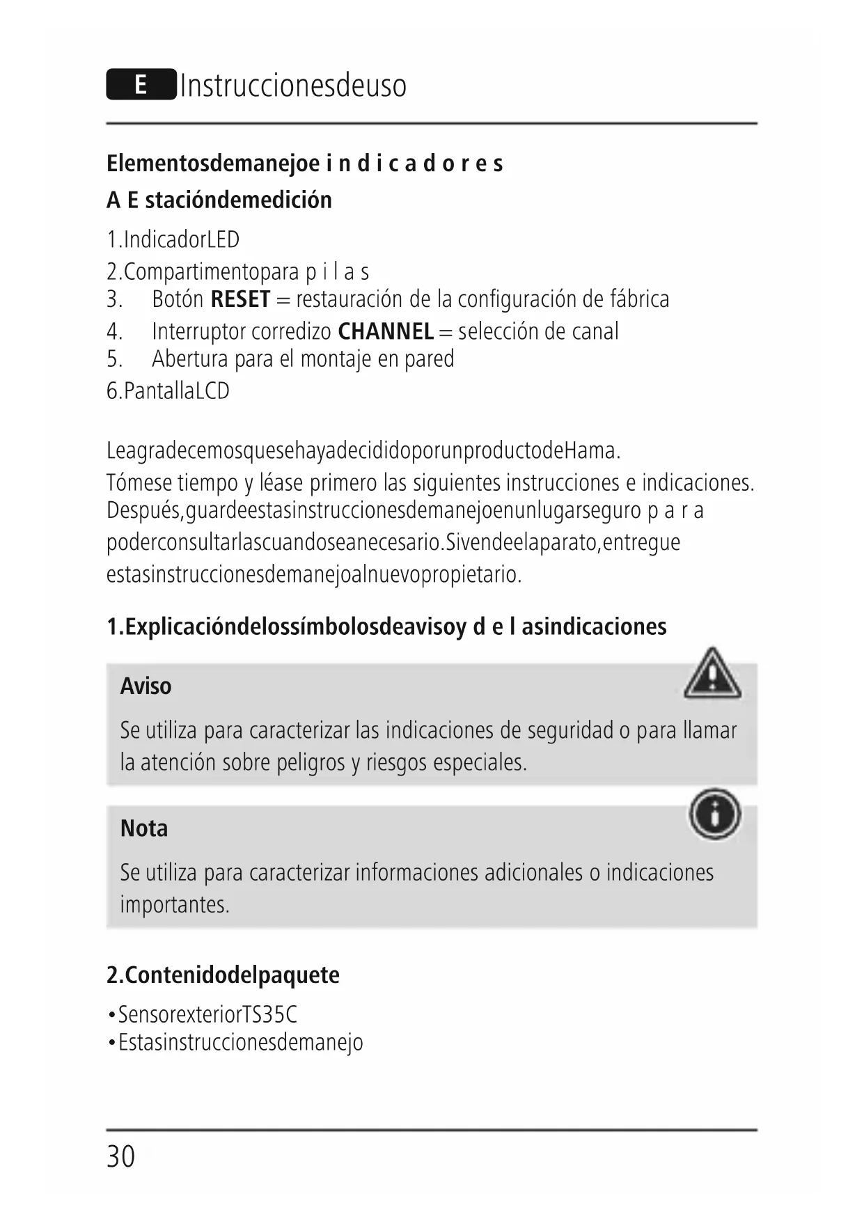 - Estas instrucciones de manejo E Instrucciones de uso31