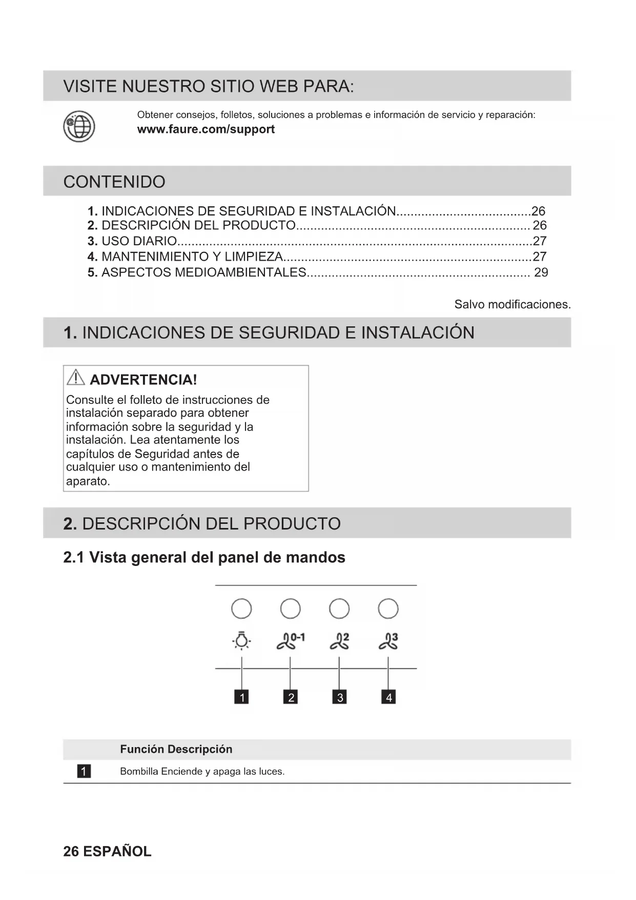 1. INDICACIONES DE SEGURIDAD E INSTALACIÓN......................................26