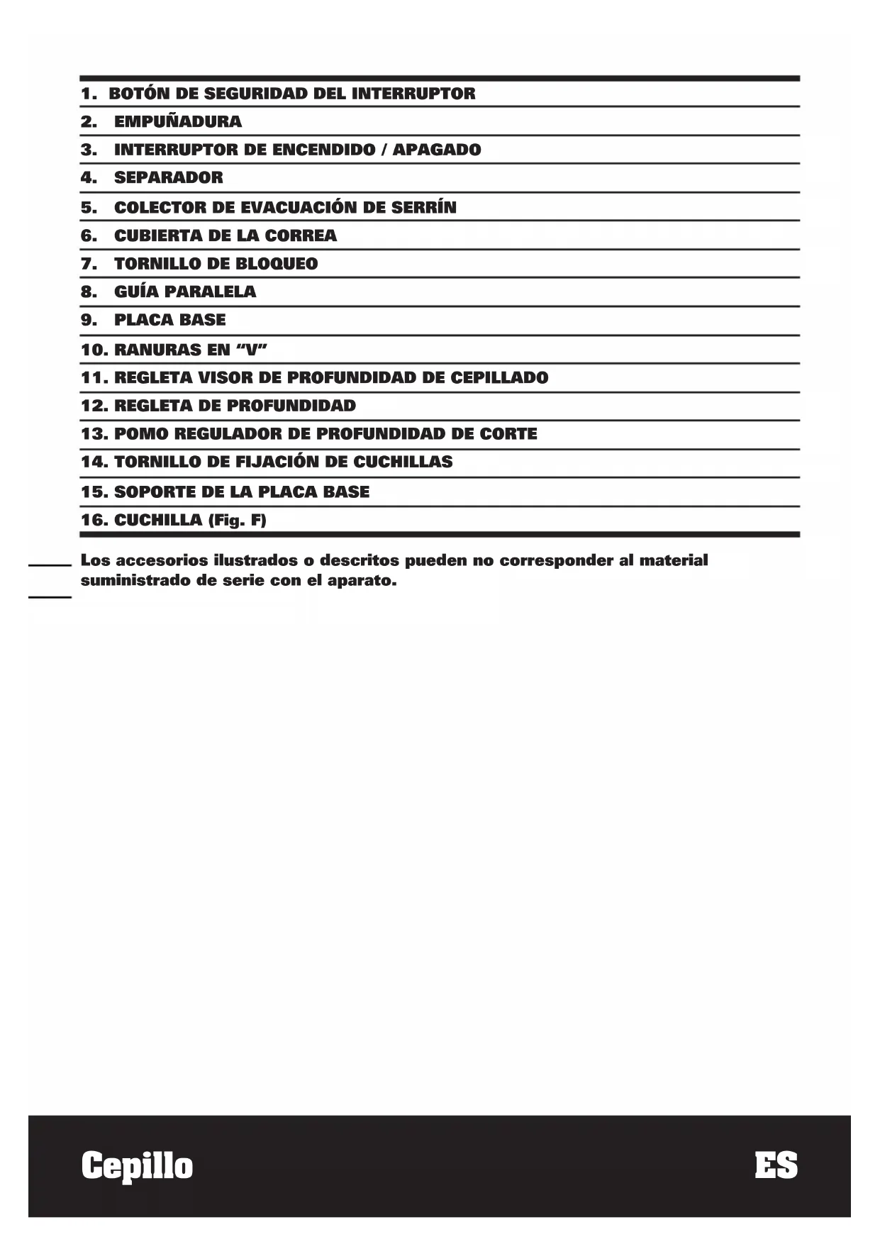 Los accesorios ilustrados o descriitos=Puen no corresponder al material suministrado de series con el aparato.