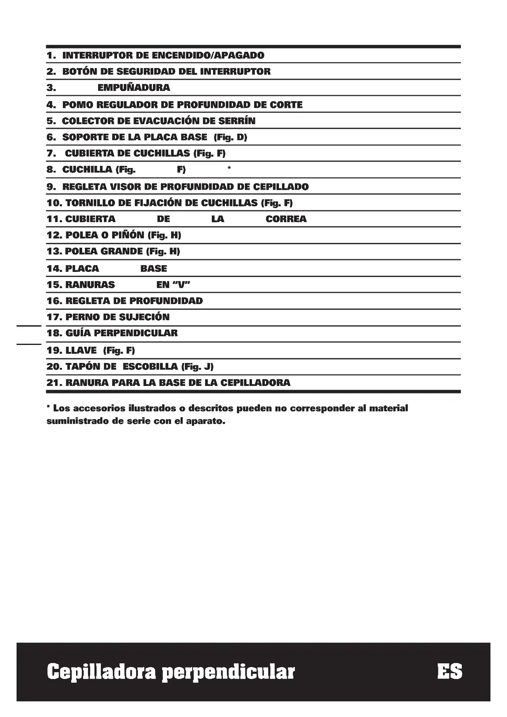 Para este trabajo se puedaemployer dos accesorios: Regleta de profundidad (16). Instale这些东西 accesorios en su cepillo. Fije la profundidad deseada por medio de la escala y lamarca en la carcasa del cepillo jusqu'à la escalata (Fig.J).Afloje el tornillo de bloqueo (18.4) y ajuste el ancho de rebajado deseado (máximo 82mm) Apriete el tornillo de bloqueo (18.4).Fije la profundidad de rebajado deseada con la regleta de profundidad (16)