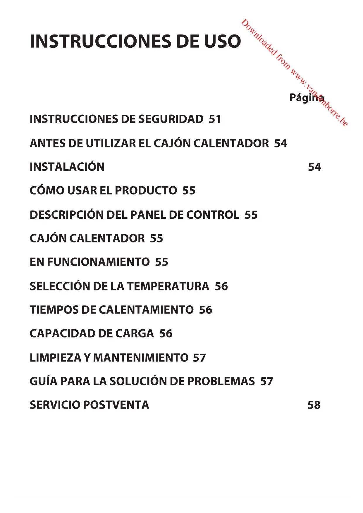 ANTES DE UTILIZAR EL CAJÓN CALENTADOR 54