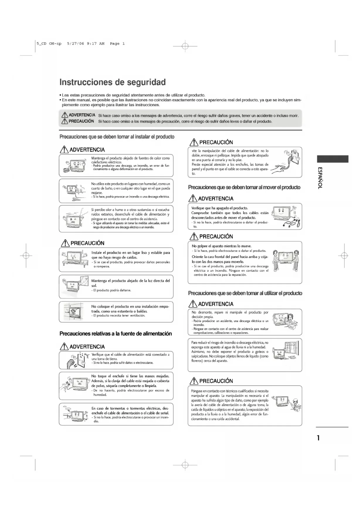 seguridad ESPANOL ?Leaestasprecaucionesdeseguridadatentamenteantesdeutilizarelproducto.?Enestemanual,esposible que lasilustracionesnocoincidanexactamenteconlaaparienciarealdelproducto,