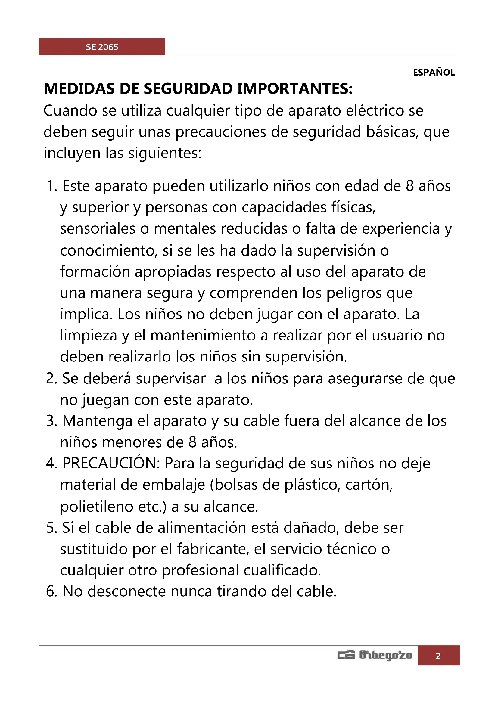 MANUAL DE USUARIO SE 2065 Orbegozo
