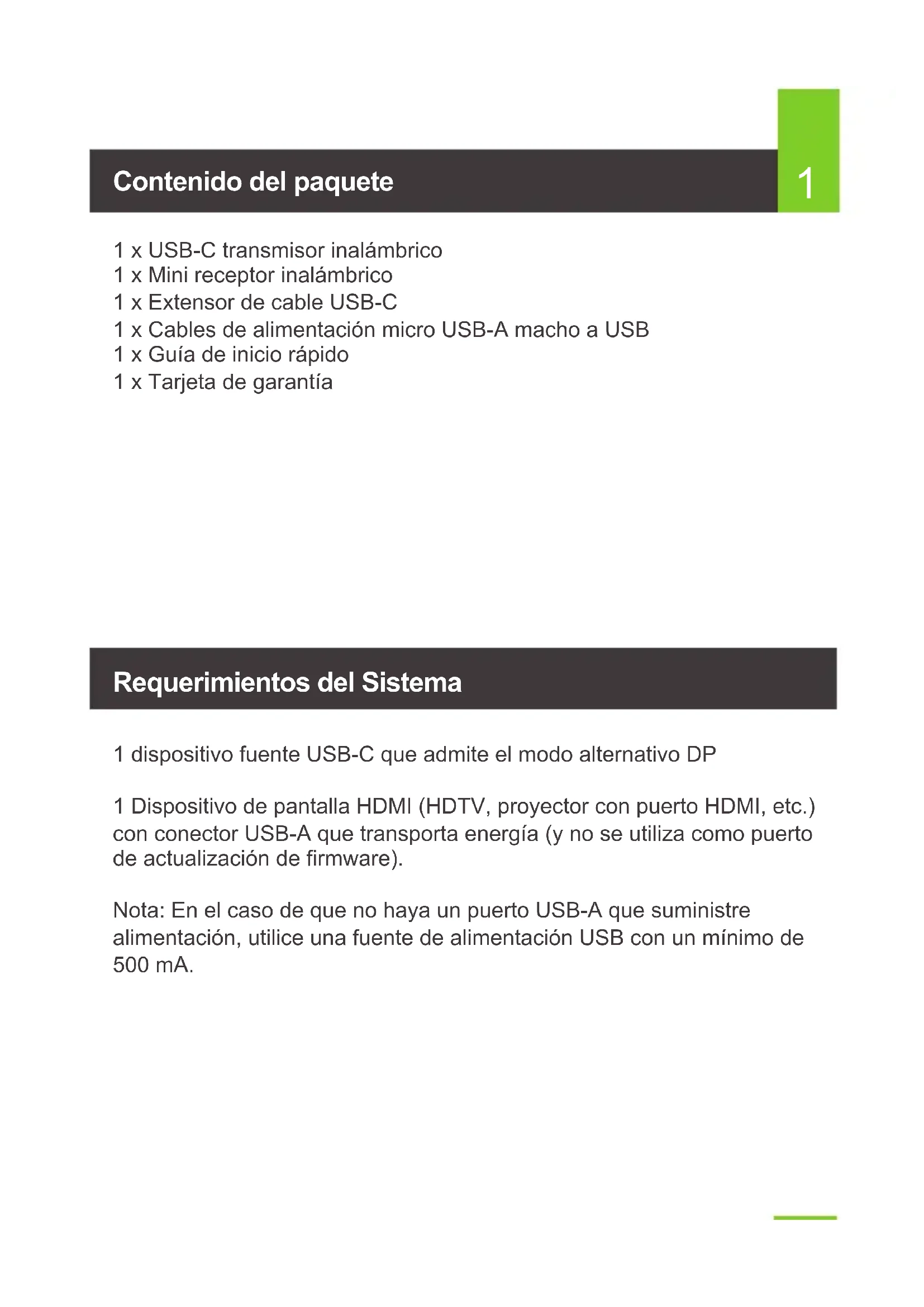 1 x USB-C transmisor inalámbrico