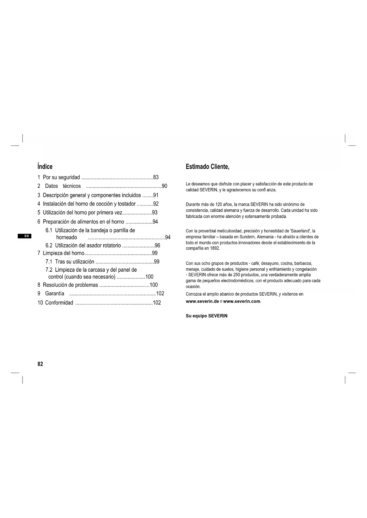 - Su equipo SEVERIN Índice 1 Por su seguridad p. 83
