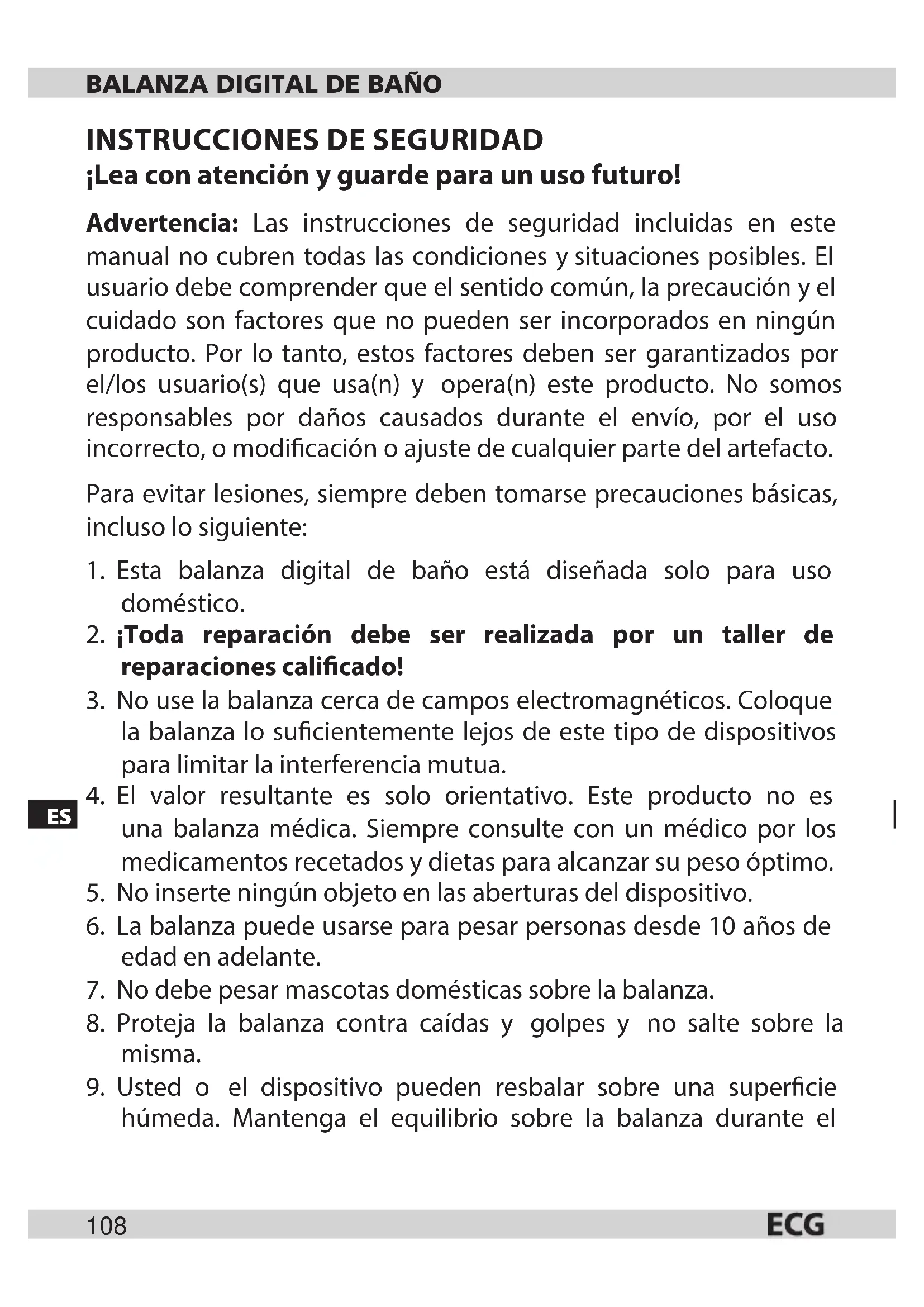 - Esta balanza digital de baño está diseñada solo para uso doméstico.