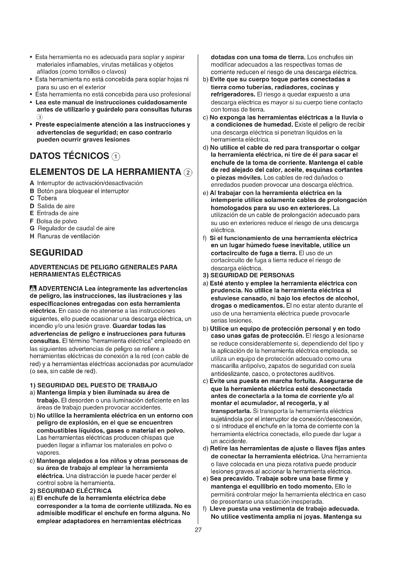 - Esta herramienta se ha diseñado para soplar y aspirar materiales no peligrosos para la salud de las personas