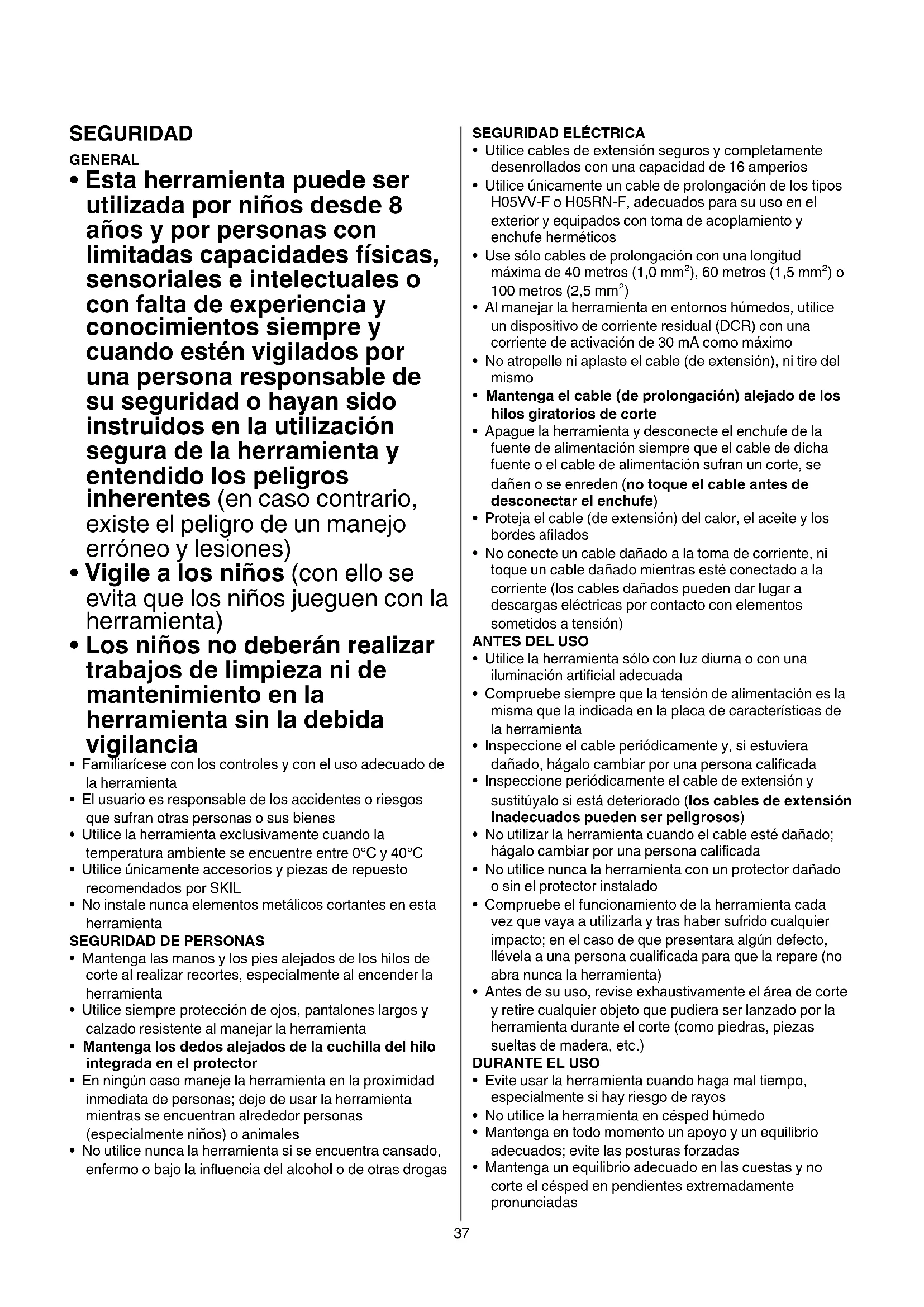 - Esta herramienta puede ser utilizada por niños desde 8 años y por personas con limitadas capacidades físicas, sensoriales e intelectuales o con falta de experiencia y conocimientos siempre y cuando estén vigilados por una persona responsable de su seguridad o hayan sido instruidos en la utilización segura de la herramienta y entendido los peligros inherentes (en caso contrario, existe el peligro de un manejo erróneo y lesiones)