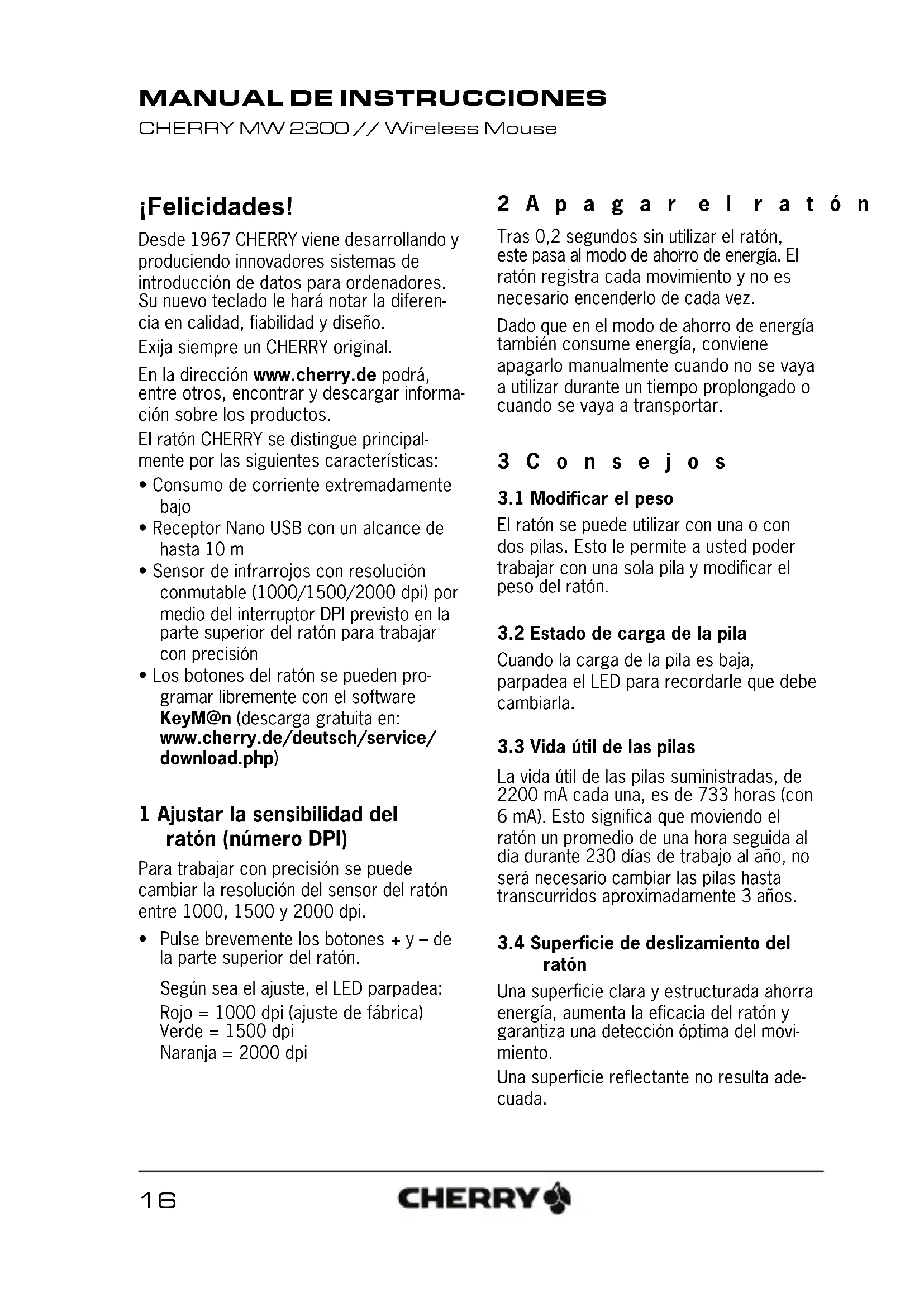 MW 2300 - Ratón Cherry - Manual de uso y guía de instrucciones gratis