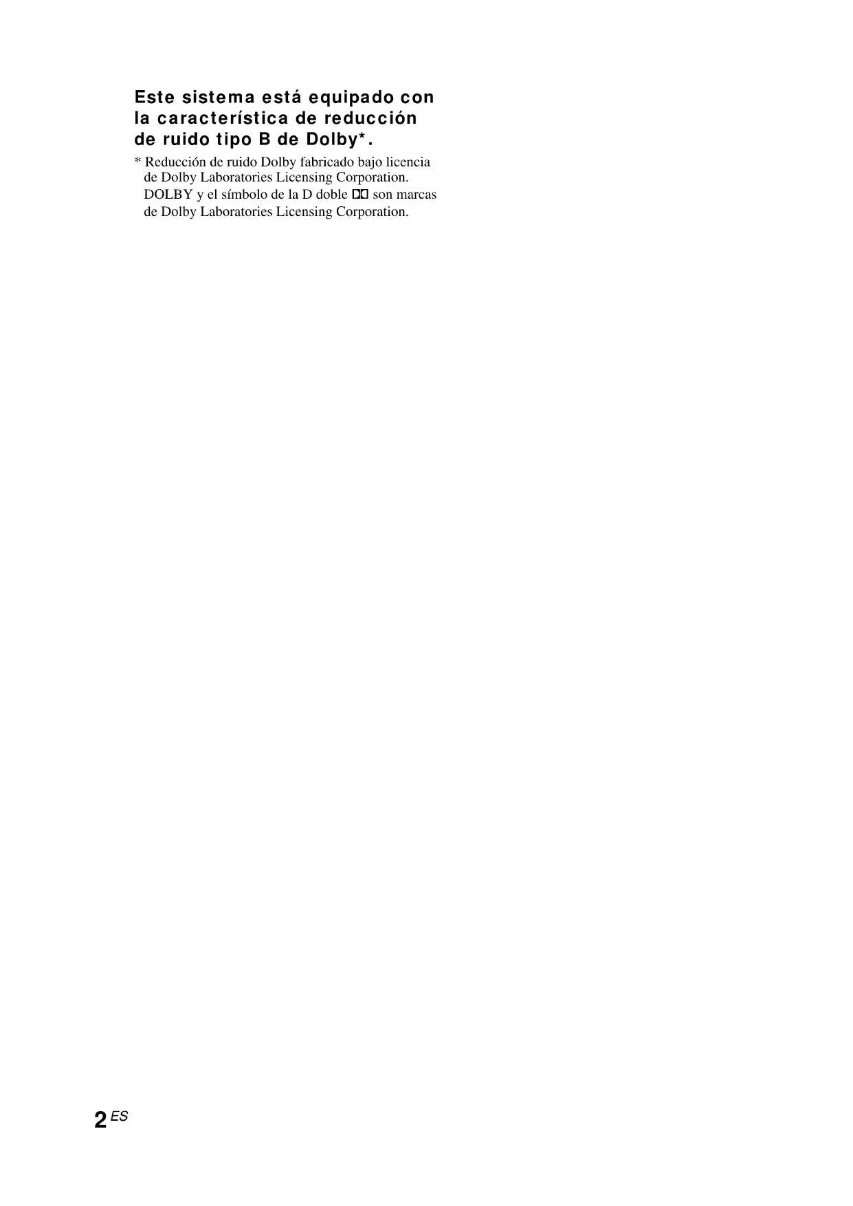 2) Este deck de cassettes está equipado con el sistemas de reduccion de ruido tipo B de Dolby.