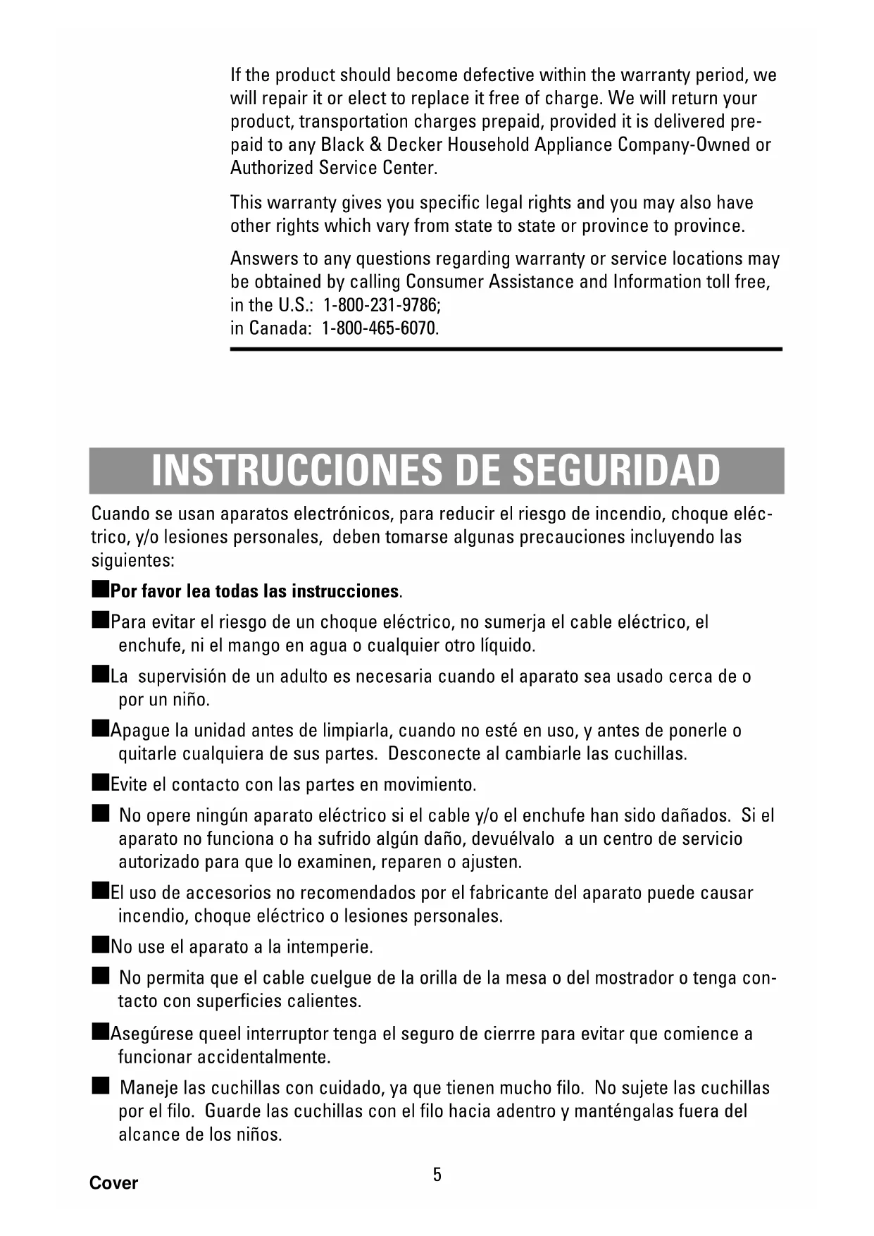 Si necesita ayuda, acuda a un centro de servicio autorizado o a uno de productos electrodomésticos de Black & Decker. Puede encontrar un centro cercano a ud. buscando en las páginas amarillas de la guía telefónica bajo, "Appliances-Small-Repairing" (pequeñas reparaciones de aparatos), o consulte el folleto incluído. También puede llamar al número "800" apropiado, que aparece en la cubierta de este manual. Si envía por correo la unidad, empáquela con cuidado dentro de su caja original o una suficientemente fuerte para evitar cualquier daño. Le agradeceremos que incluya una nota para nuestro centro de servicio describiendo el problema. No se olvide de anotar su dirección y número telefónico. Para su propia protección le sugerimos enviar el paquete asegurado.