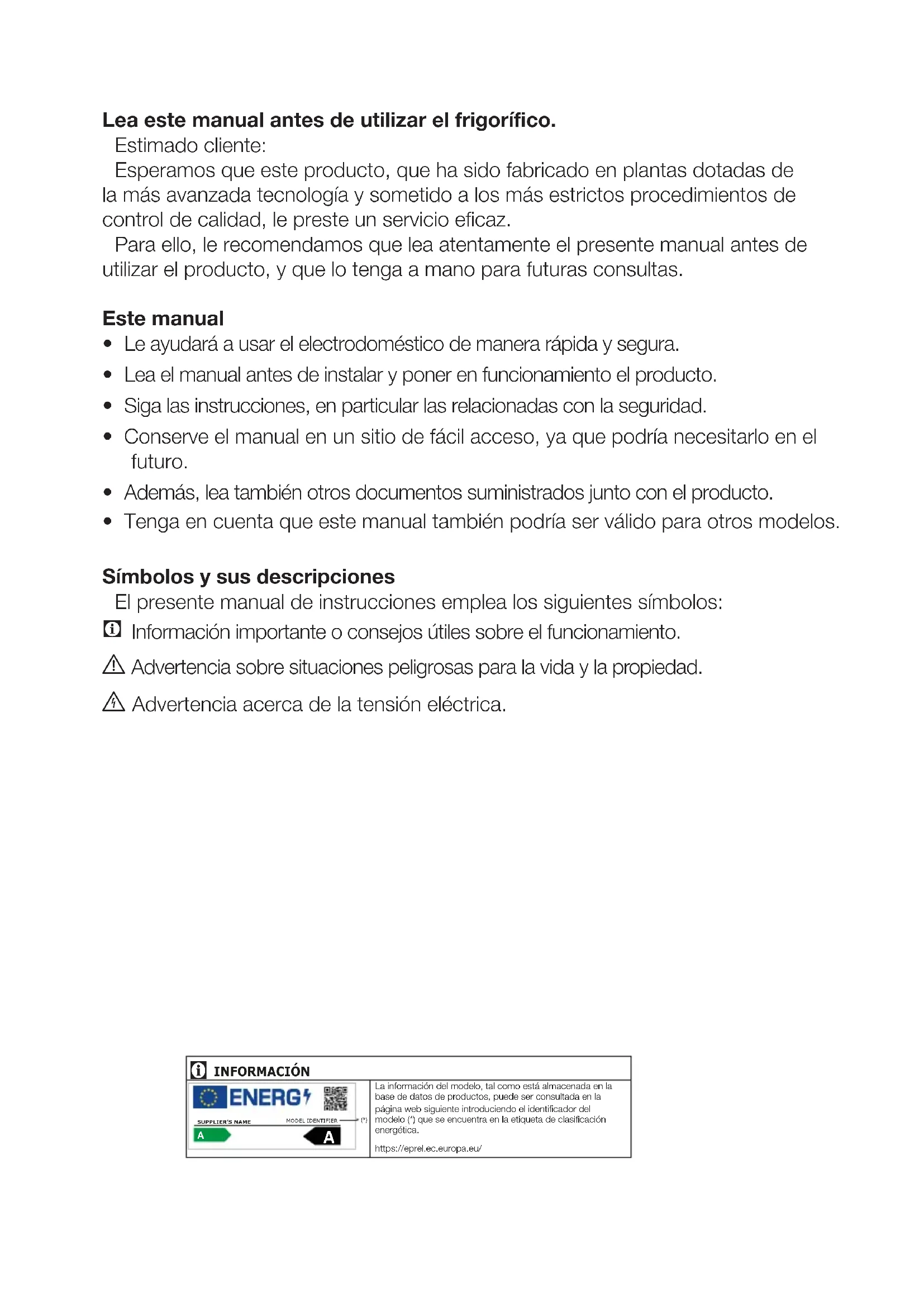 - Le ayudará a usar el electrodoméstico de manera rápida y segura.