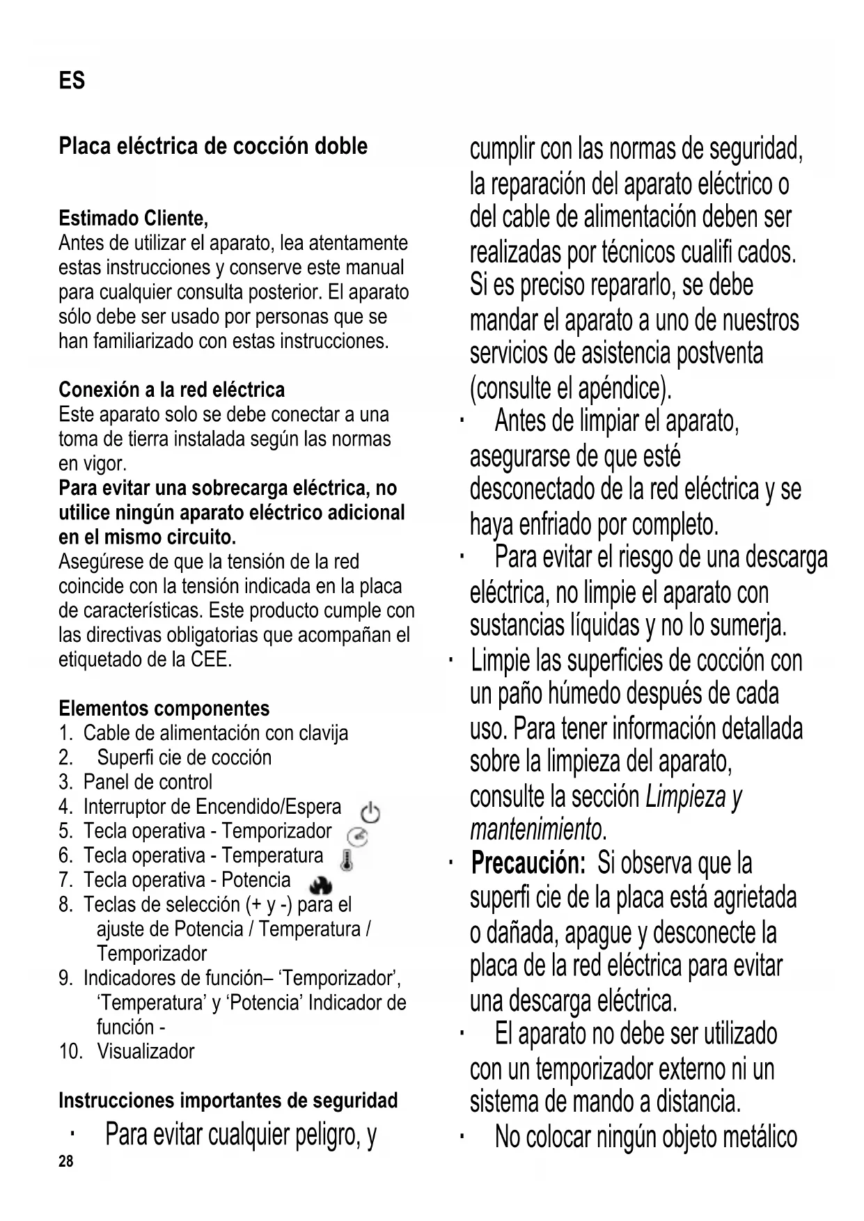 ES Instrucciones de uso Placa electrica de cocciudadble 28