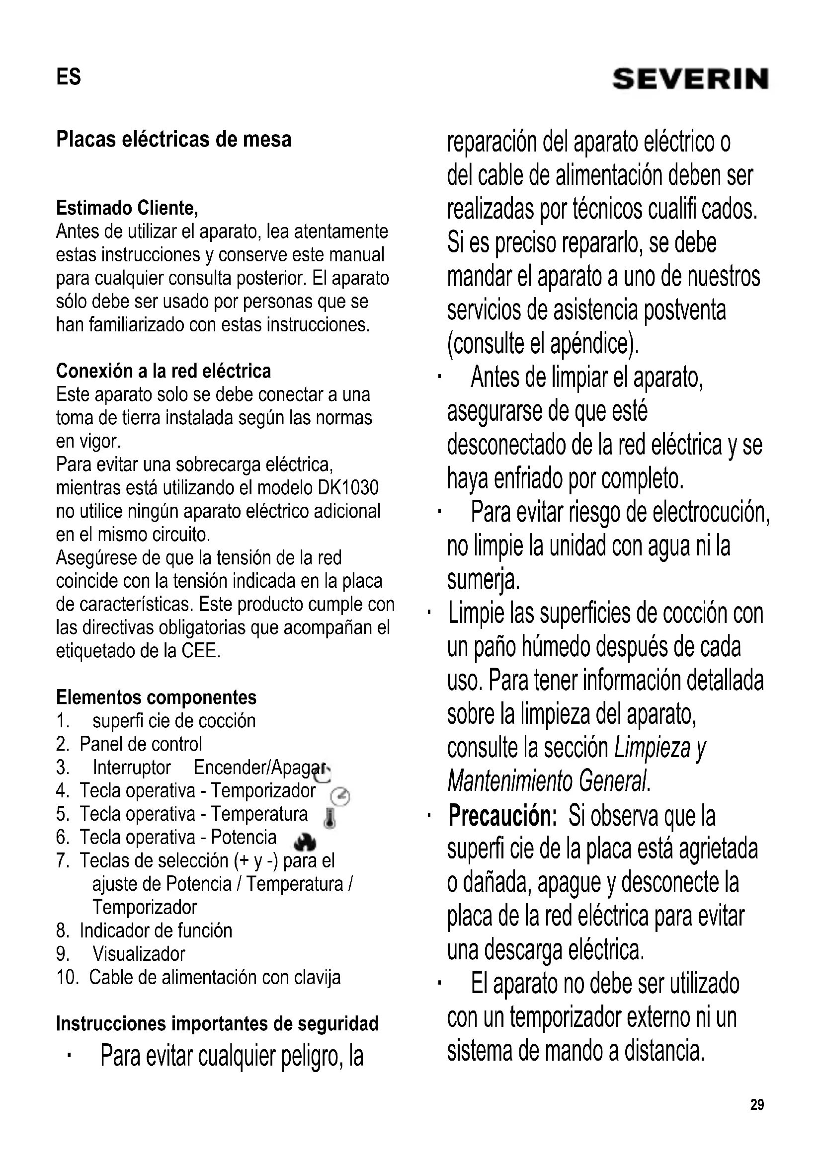 ES Instrucciones de uso Placas eléctricas de mesa 29