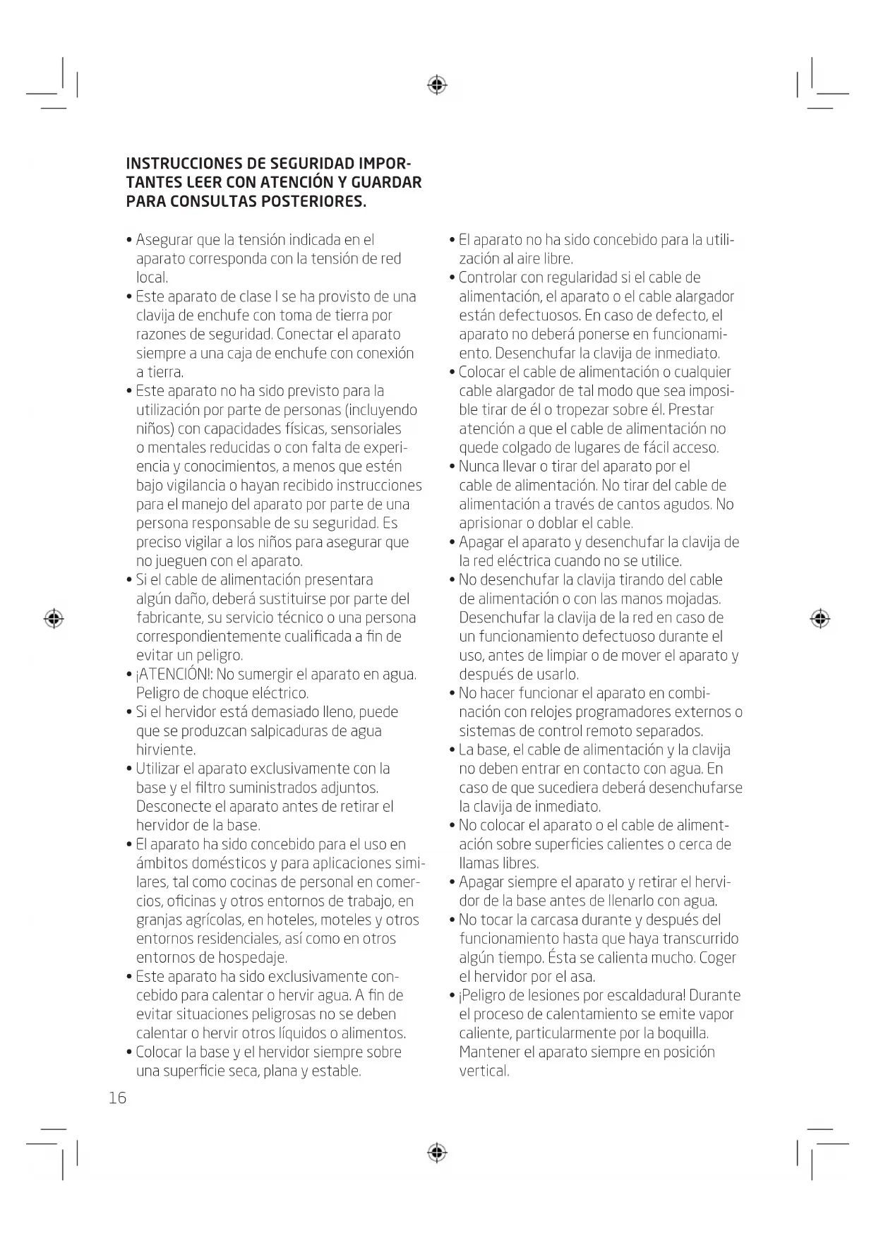 - Este aparato ha sido exclusivamente concebido para calendar o hervir agua. A fin de evaporar situaciones peligrosas no se deben calendar o hervirOthers liquidos o alimentos.