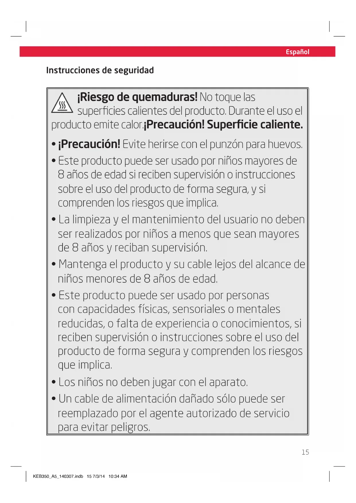 - Este producto puede ser uso por niños mayores de 8 años de edad si reciben supervisión o instructaciones sobre el uso del producto de forma segura, y si comprenden los riesgos que implica.