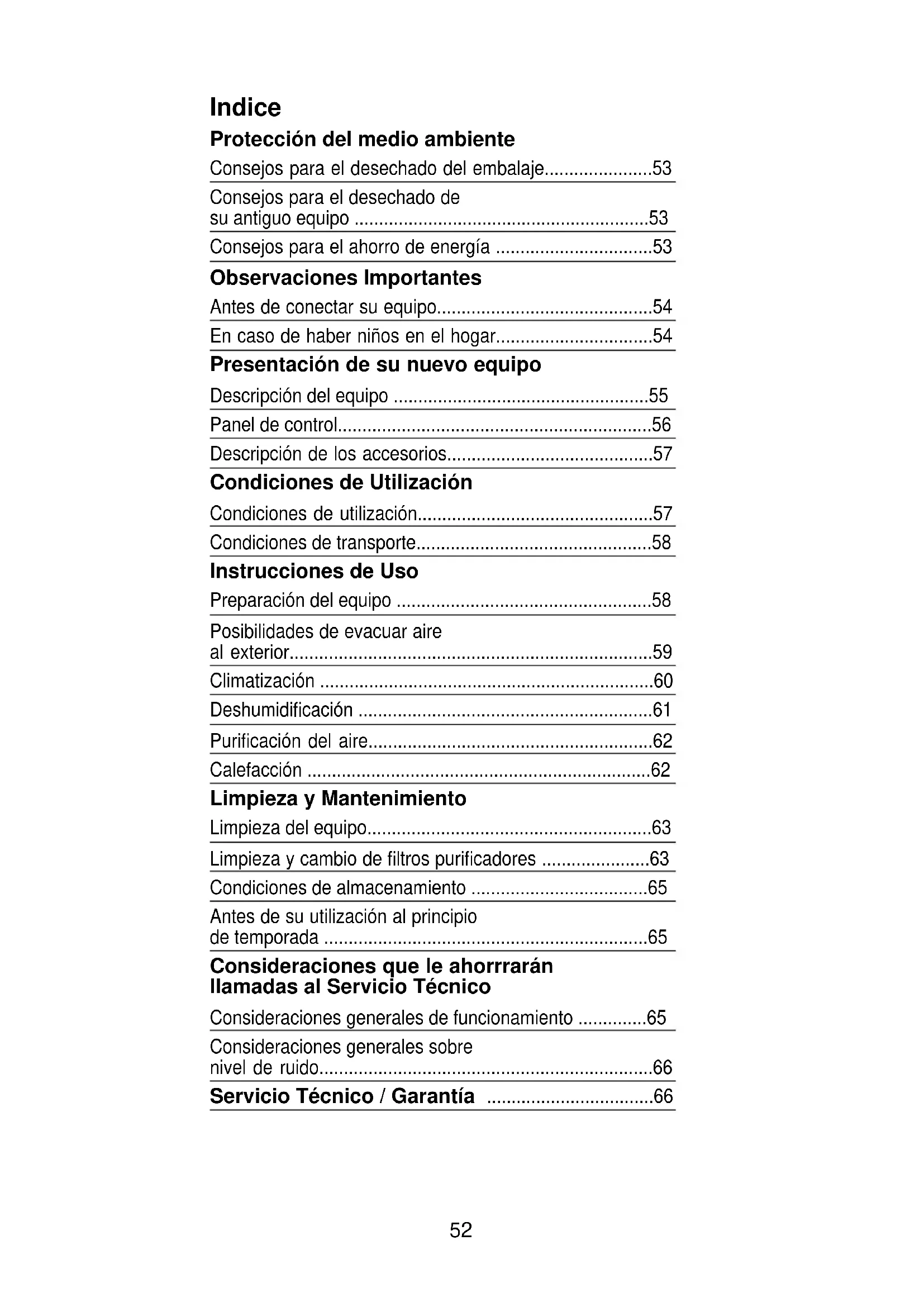 - Conselhos para a eliminação do seu antigo equipamento p. 68