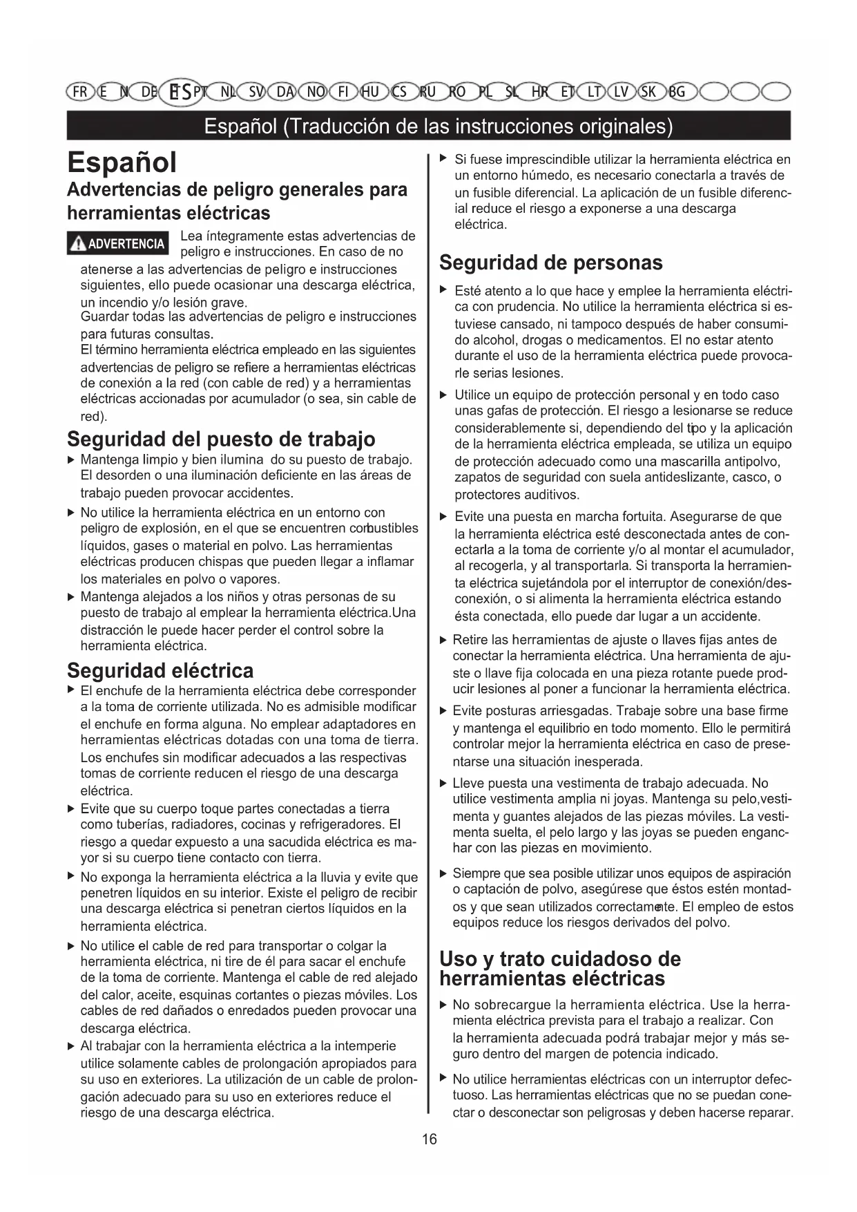 E S FR E N DE IT PT NL SV DA NO FI HU CS RU RO PL SL HR ET LT LV SK BGEspañol (Traducción de las instrucciones originales)