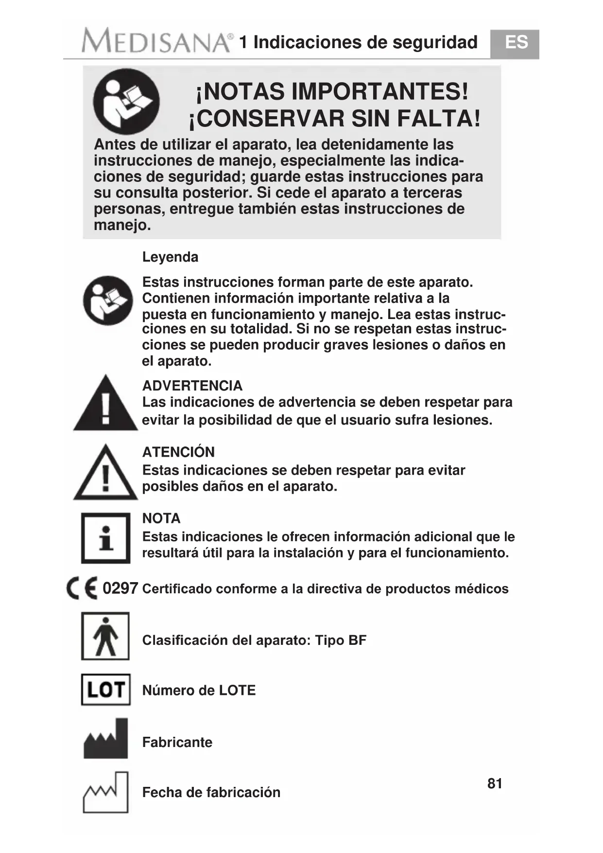- Con relacion a los productos de MEDISANA, se Offerce una garantía por un periodo de tres años a partir de la Fecha de compra. En caso de una reclamación, la Fecha de compra debe probarse mediante el recibo de compra o la factura.