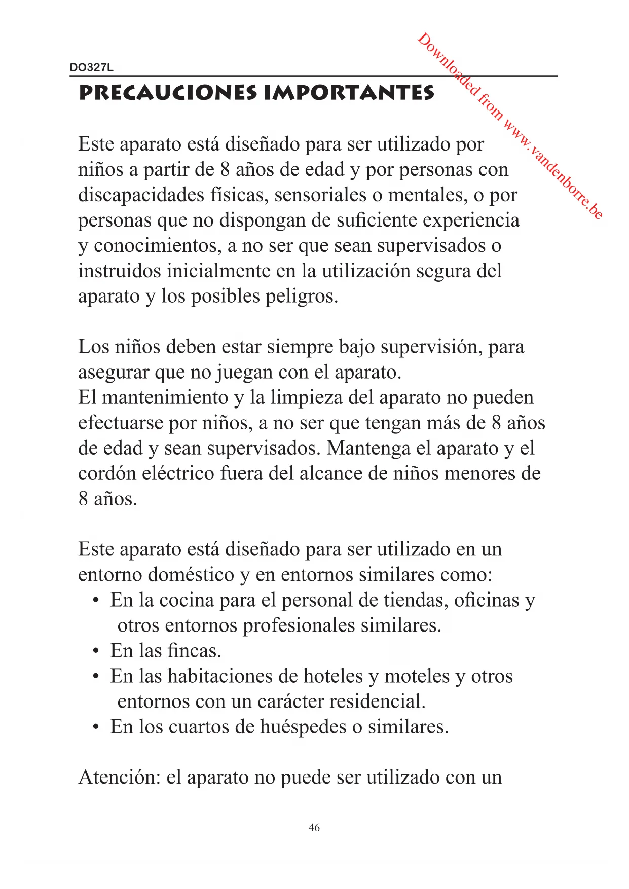 Este aparato está diseñado para ser utilizado por niños a partir de 8 años de edad y por personas con discapacidades físicas, sensoriales o mentales, o por personas que no dispongan de suficiente experiencia y conocimientos, a no ser que sean supervisados o instruidos inicialmente en la utilización segura del aparato y los posibles peligros.
