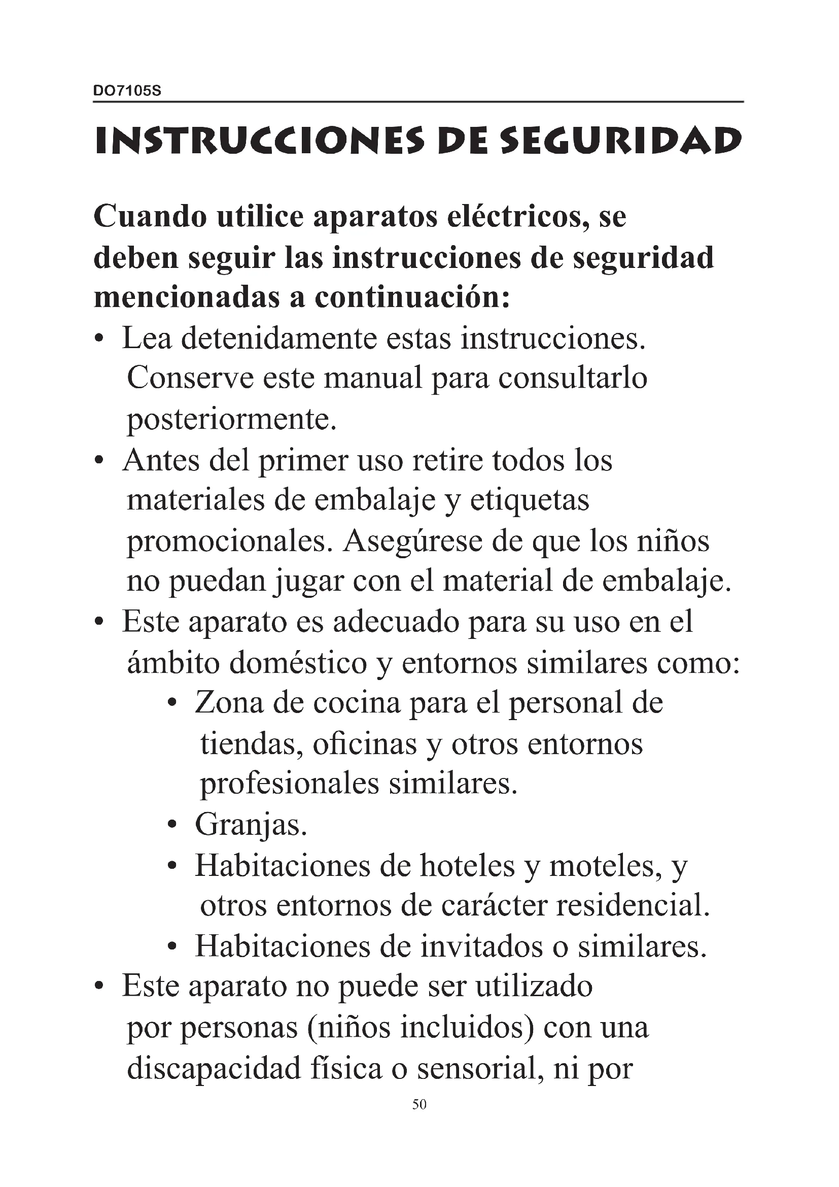 - Este aparato no puede ser utilizado por personas (niños incluidos) con una discapacidad física o sensorial, ni porDO7105S