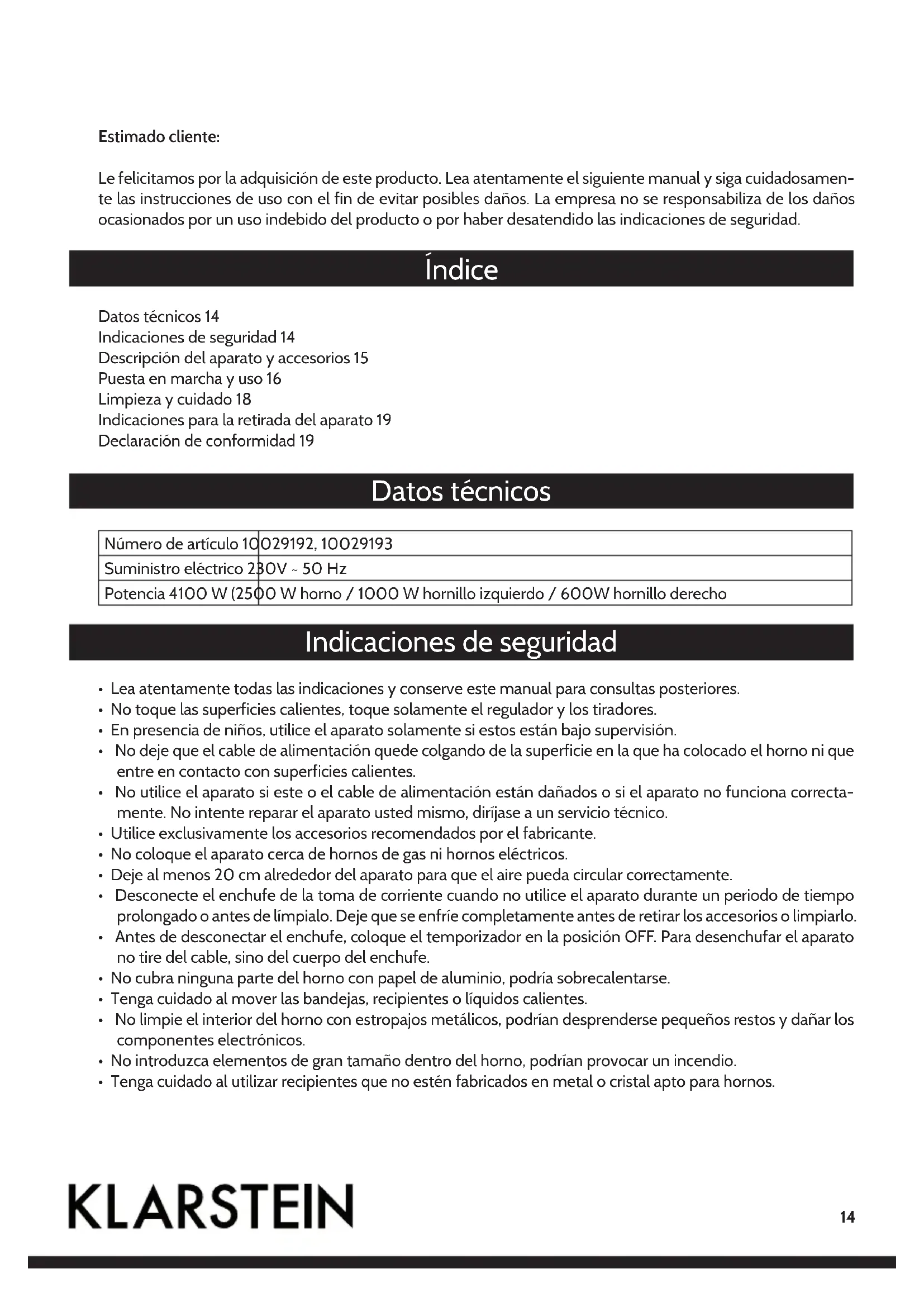Mini 10029193 - Horno Klarstein - Manual de uso y guía de instrucciones gratis
