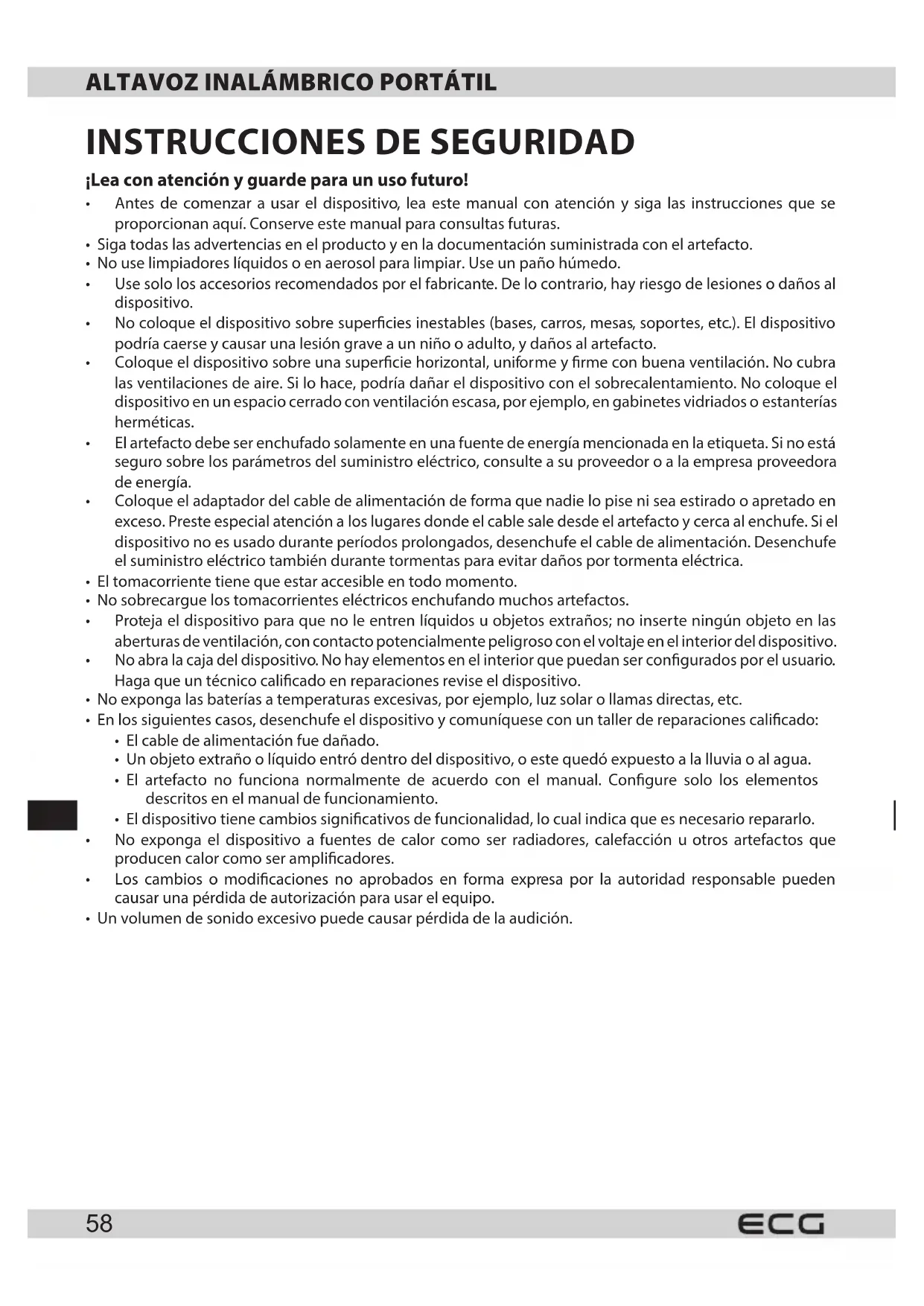 - Use solamente un adaptor de calidad para cargar el altovoz.