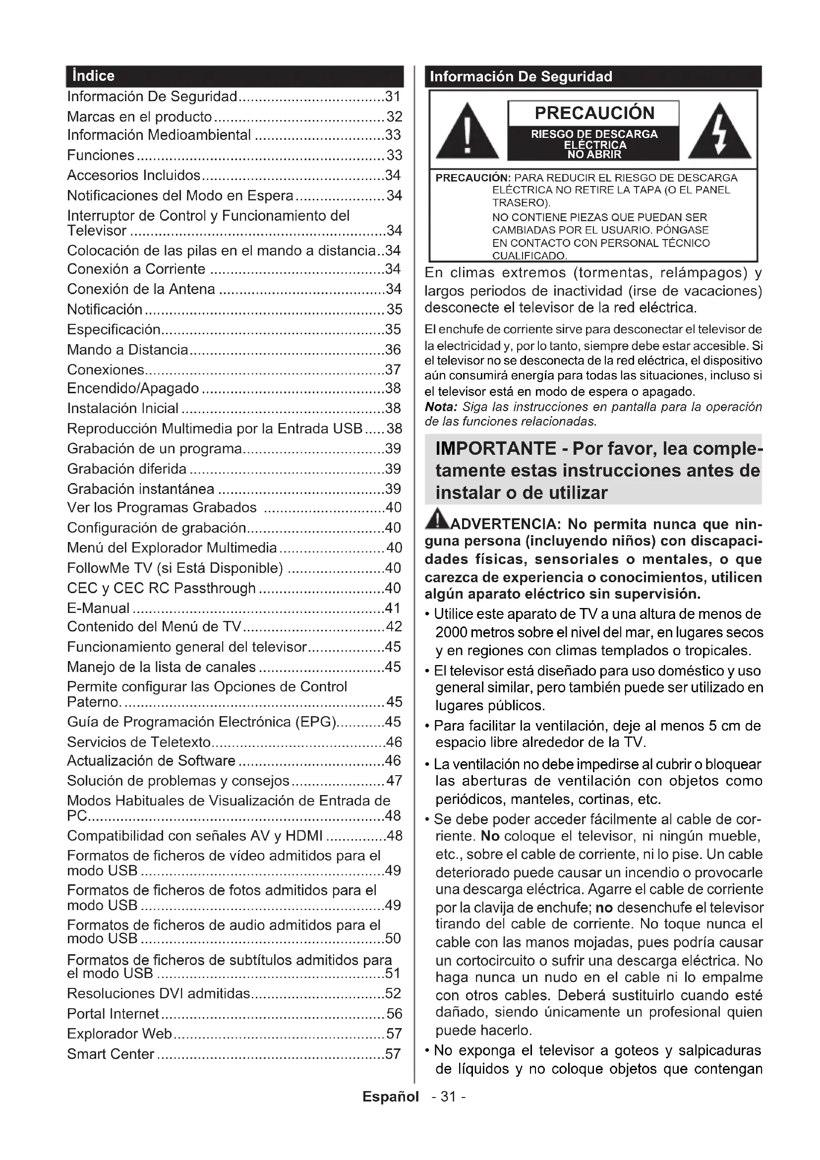 Interruptor de Control y Funcionamiento del Televisor ....34