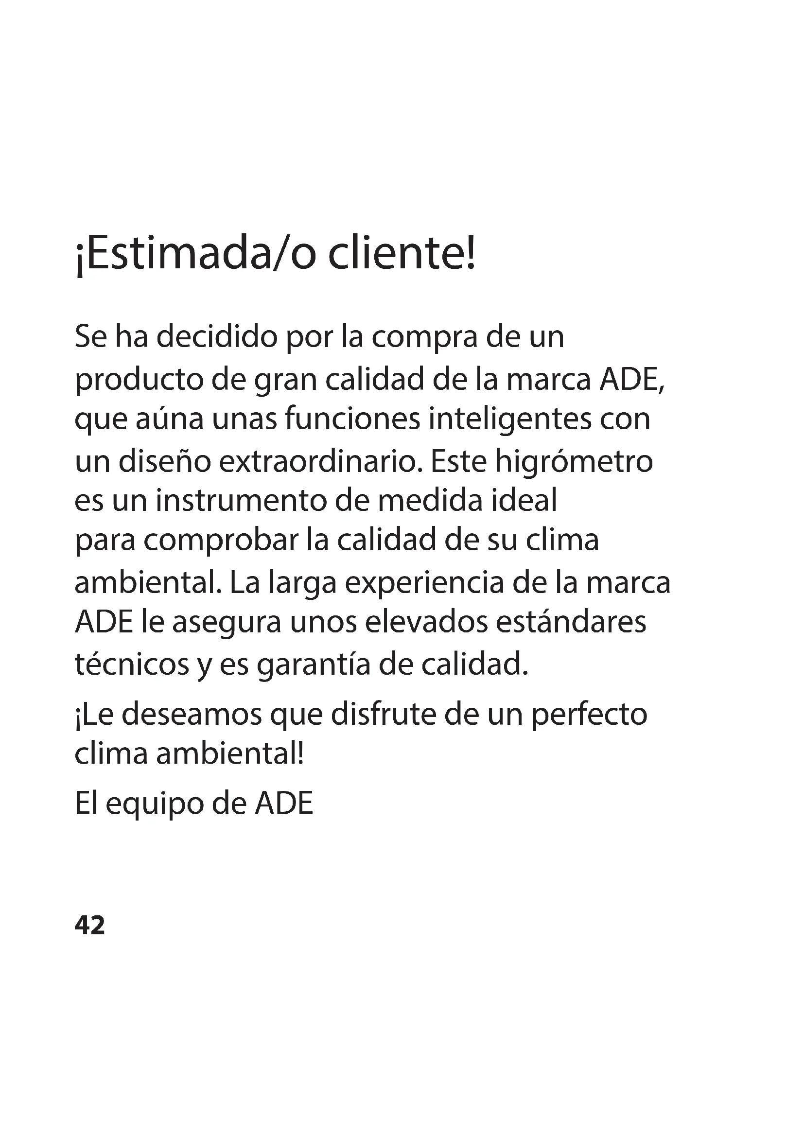 Se ha decidido por la compra de un producto de gran calidad de lamarca ADE, que aúaunas functions intelligentes con un Diseño extraordinary. Este higrómetro es un instrumento de medida ideal para comprobar la calidad de su clima ambiental. La larga experiencia de lamarca ADE le asegura unoicos elevados estandares技术和os y es garantía de calidad.