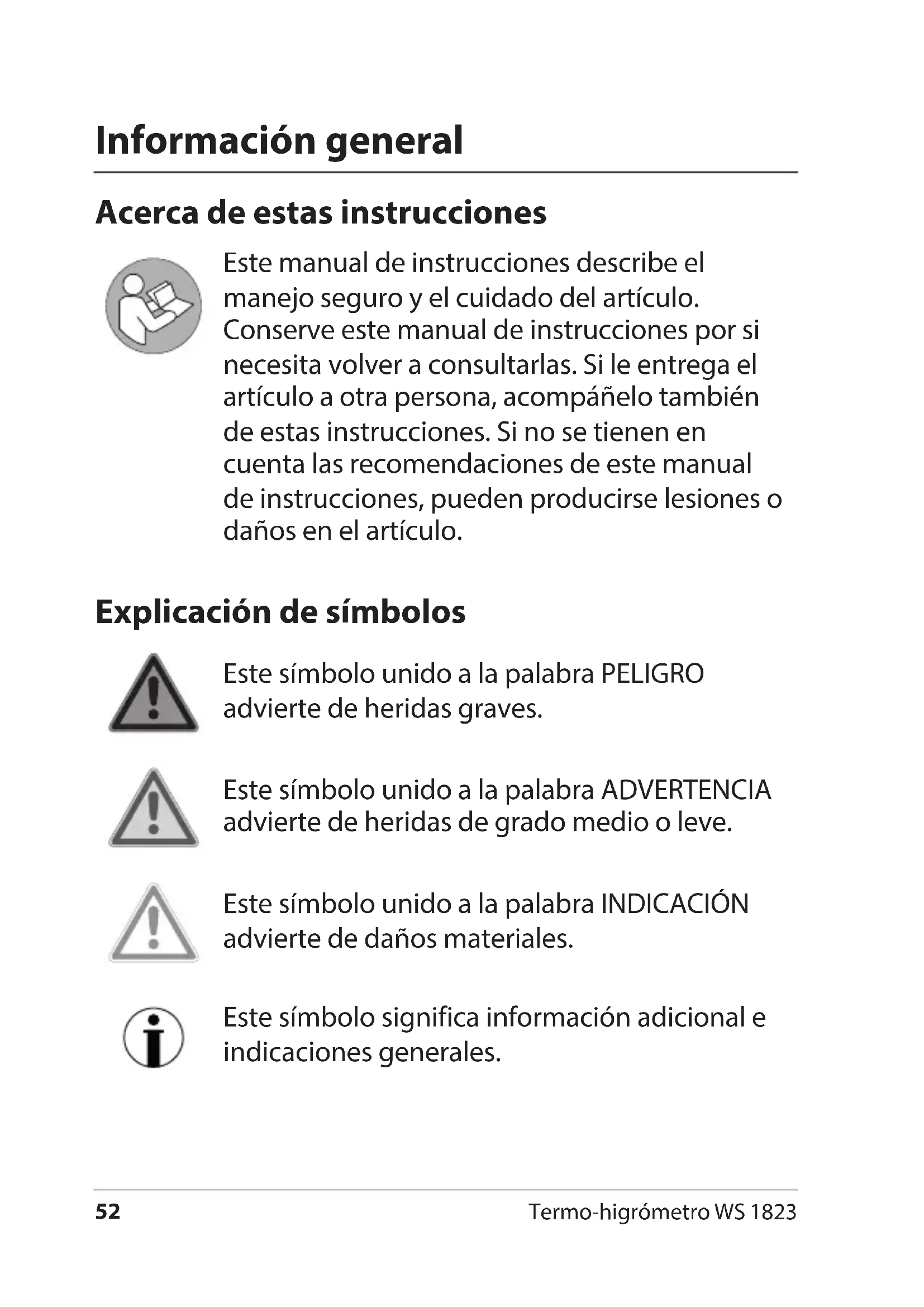 Conserve este manual de instructuciones por si necesita volver a consultarlas. Si leenta el articulo a另一边 persona, como el和支持é que se han done. Si no se tenen en cuesta las recomendaciones de estemanual de instructaciones,可以更好 producirse lesiones o daños en el articulo.