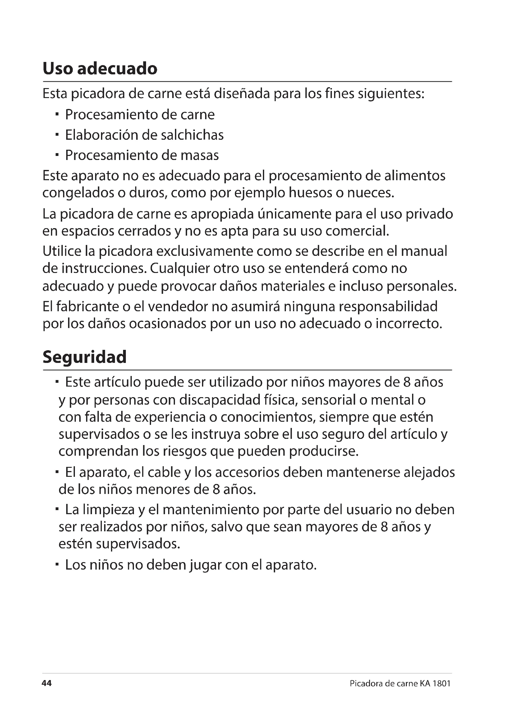 Utilice la picadora exclusivamente como se describe en el manual de instrucciones. Cualquier otro uso se entenderá como no adecuado y puede provocar daños materiales e incluso personales.