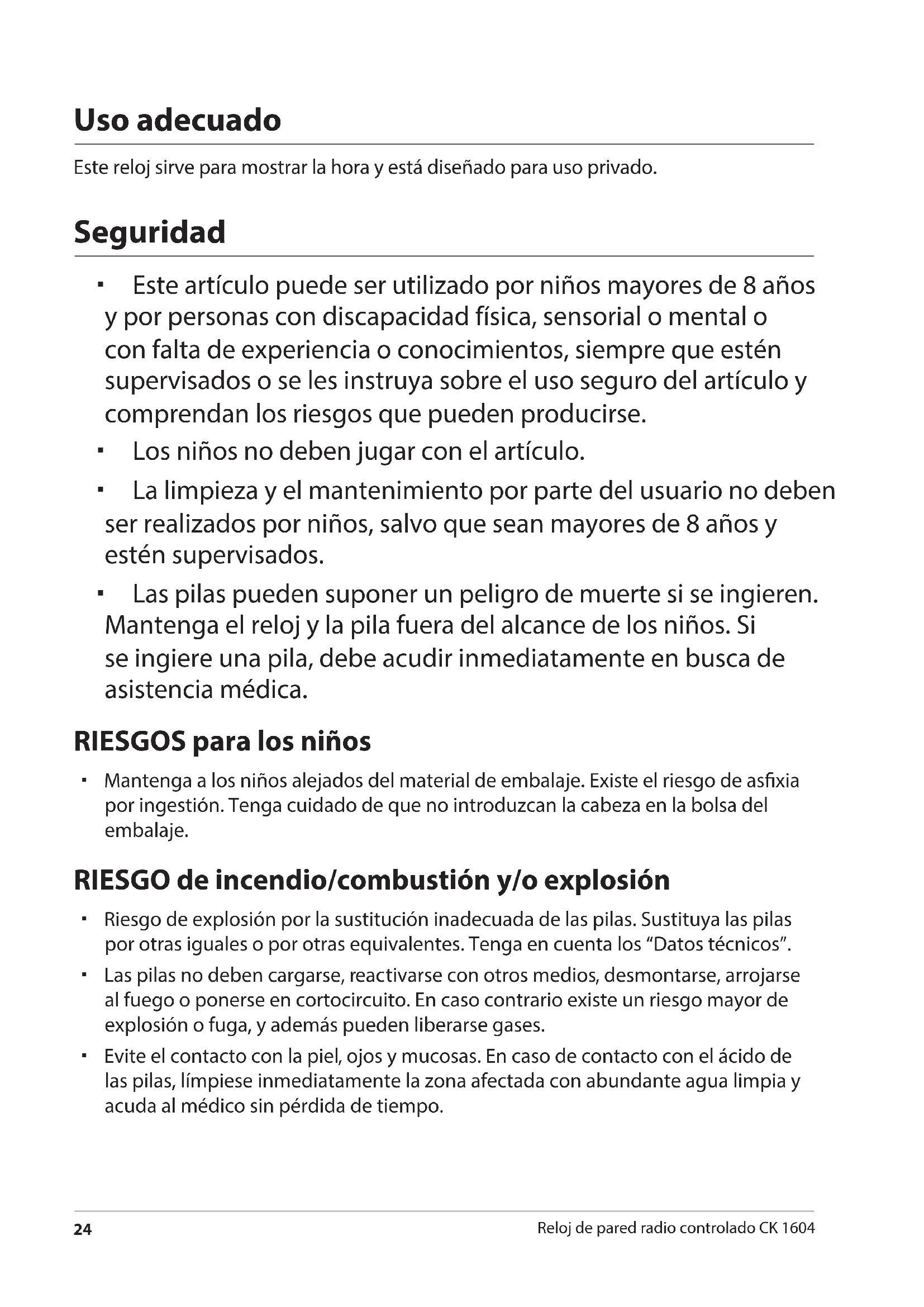 - Saque la pila del articulo cuando está gastada o cuando no vaya a utiliser el reloj durante un tiempo prolongado. De este modo evitará los danios que pudieran producirse por una fuga del liquido de las pilas.