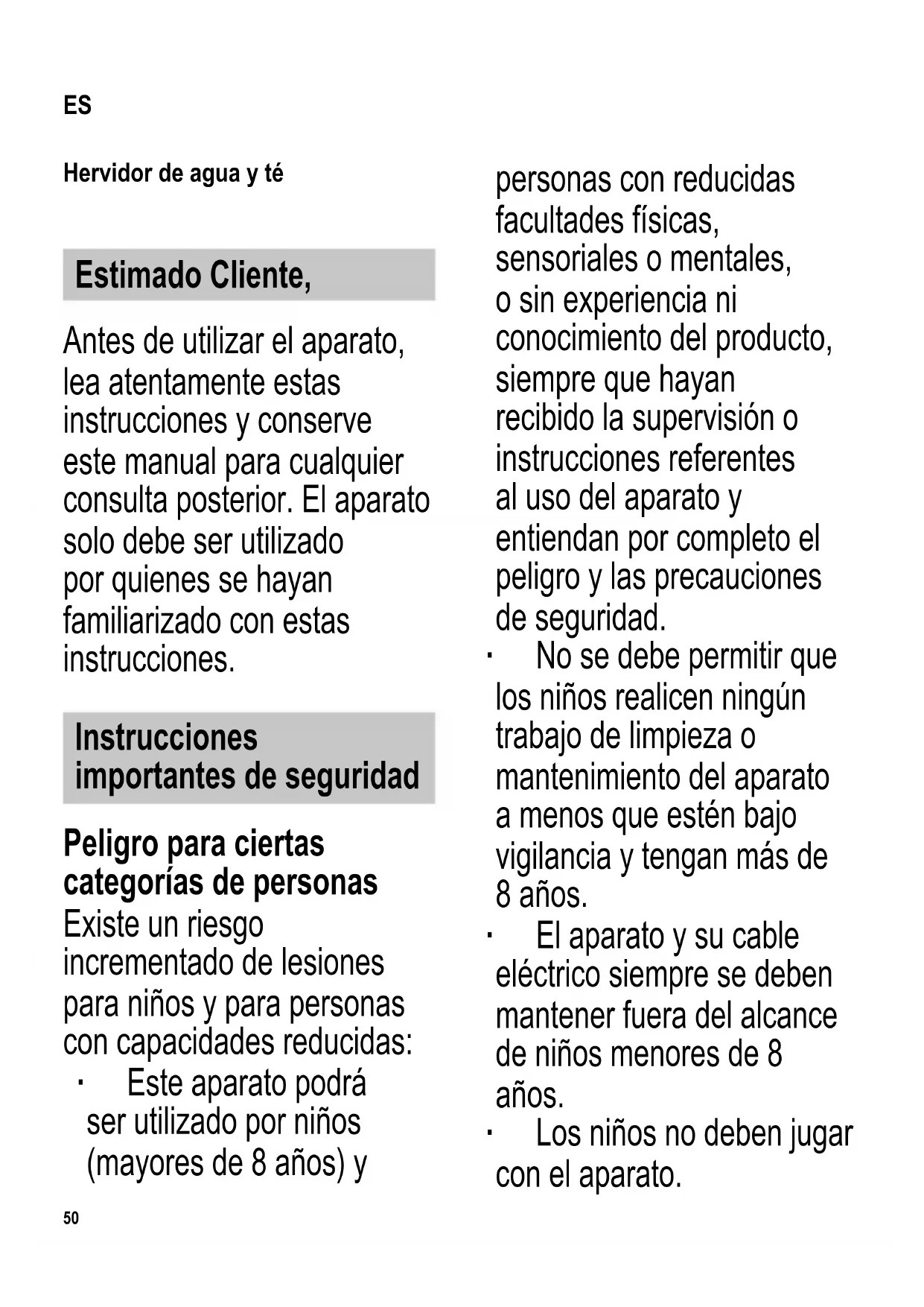 ES Instrucciones de uso Hervidor de agua y té 50