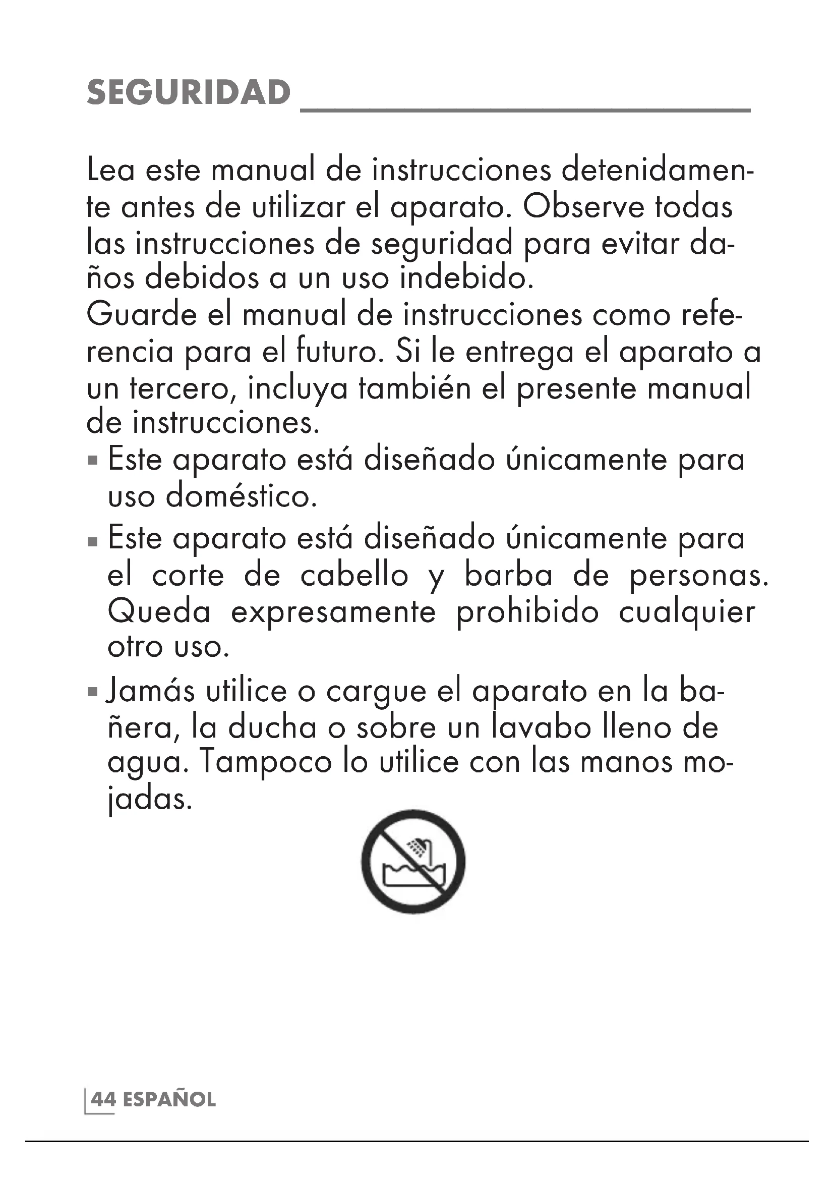 - Este aparato está disnado únicamente para el corte de Cableo y barba de personas. Queda expresamente prohibido在哪ier/o lo.