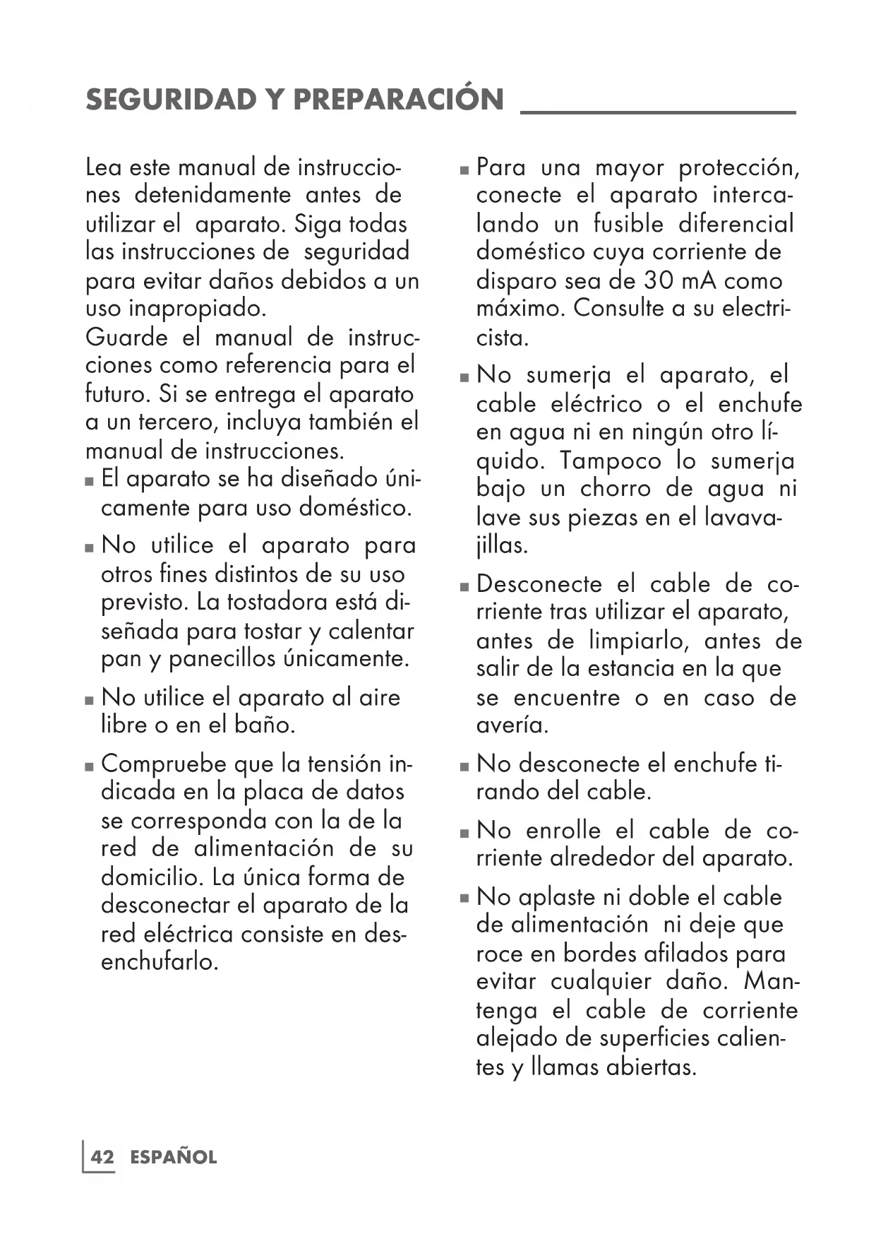 No utilice el aparato para otros fines distintos de su uso previsto. La tostadora está di- señada para tostar y calentar pan y panecillos únicamente.